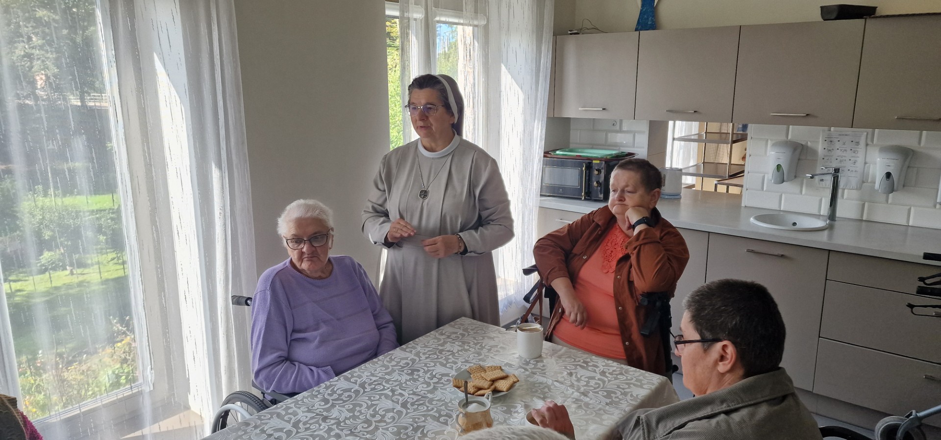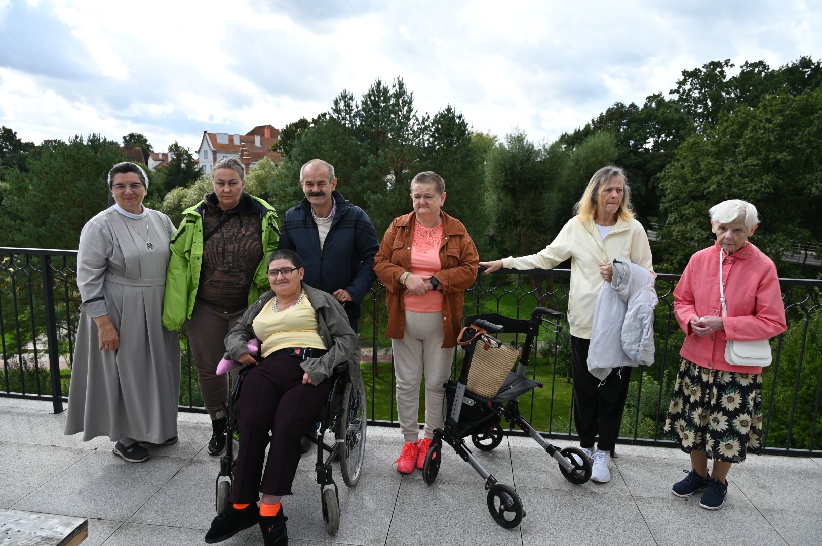 Nasza znajomość z siostrami zakonnymi poświęcającymi swoje życie, zgodnie z charyzmatem założycielki zgromadzenia – braniewianki Reginy Protmann, opiece nad ludźmi biednymi, chorymi, wykluczonymi i starszymi, ciągle się rozwija i przynosi coraz to nowe doświadczenia i odkrycia. Pogłębiając tę wspaniałą relację jednocześnie podążamy śladami naszej, od niedawna, patronki i opiekunki – Błogosławionej Siostry Marii Rolandy Abraham, urodzonej w Tolkmicku, pracującej we Fromborku i tragicznie zmarłej w klasztorze w Ornecie w czerwcu 1945 roku. W dniu 16 września 2025 roku, we wtorek, mieszkańcy Domu Pomocy Społecznej w Tolkmicku odwiedzili właśnie to historyczne miejsce zlokalizowane przy ul. Olsztyńskiej 9 w mieście, które od XIV wieku ma w herbie smoka. Mieści się tu drugi w kolejności założenia konwent sióstr katarzynek oraz zespolony z nim, funkcjonujący od dwóch lat, Dom Opieki im. Sióstr Męczenniczek z Ornety (czyli sióstr: Marii Rolandy Abraham, Marii Gunhildy – Dorothei Steffen oraz Marii Bony – Anny Pestki).