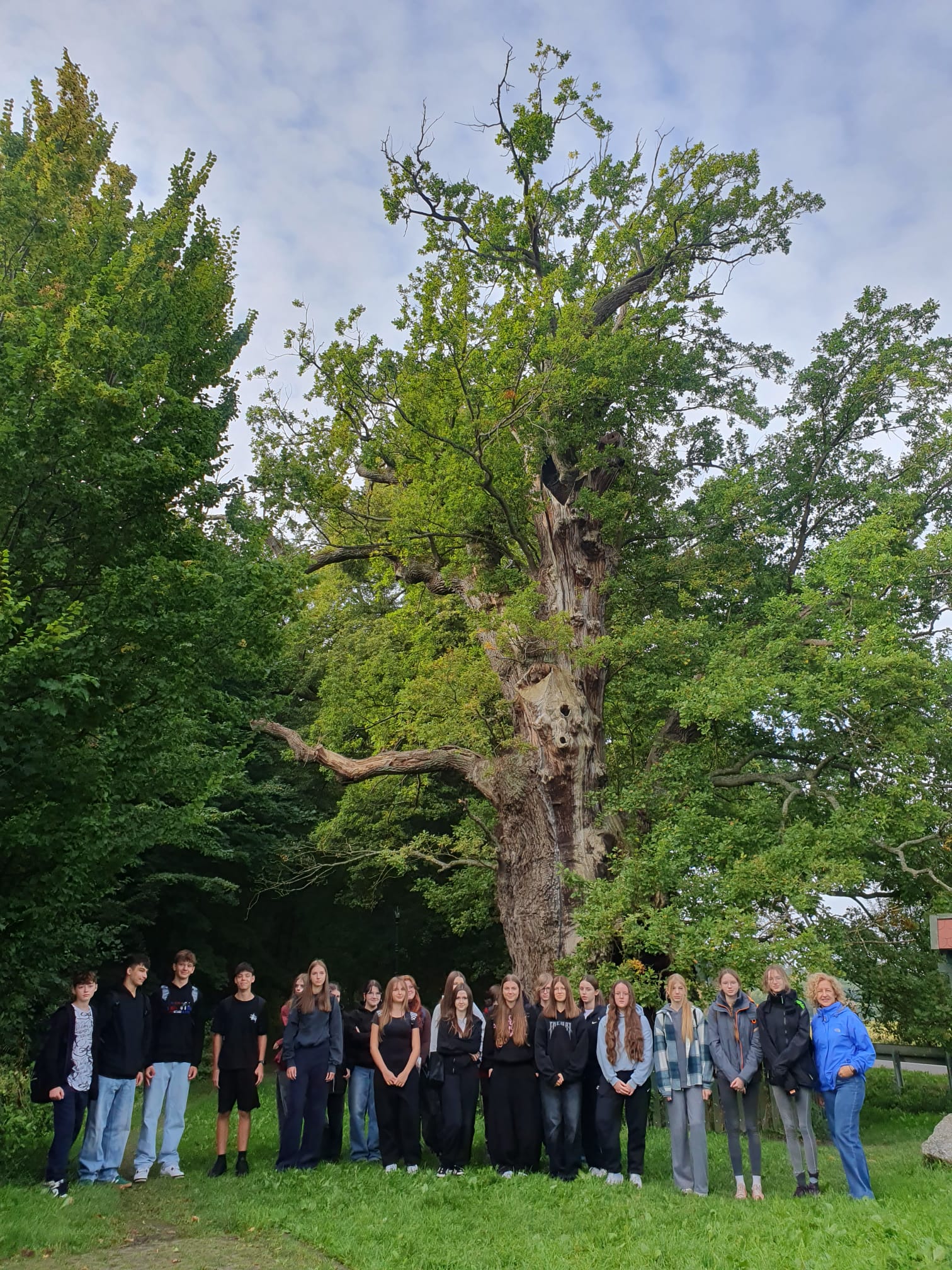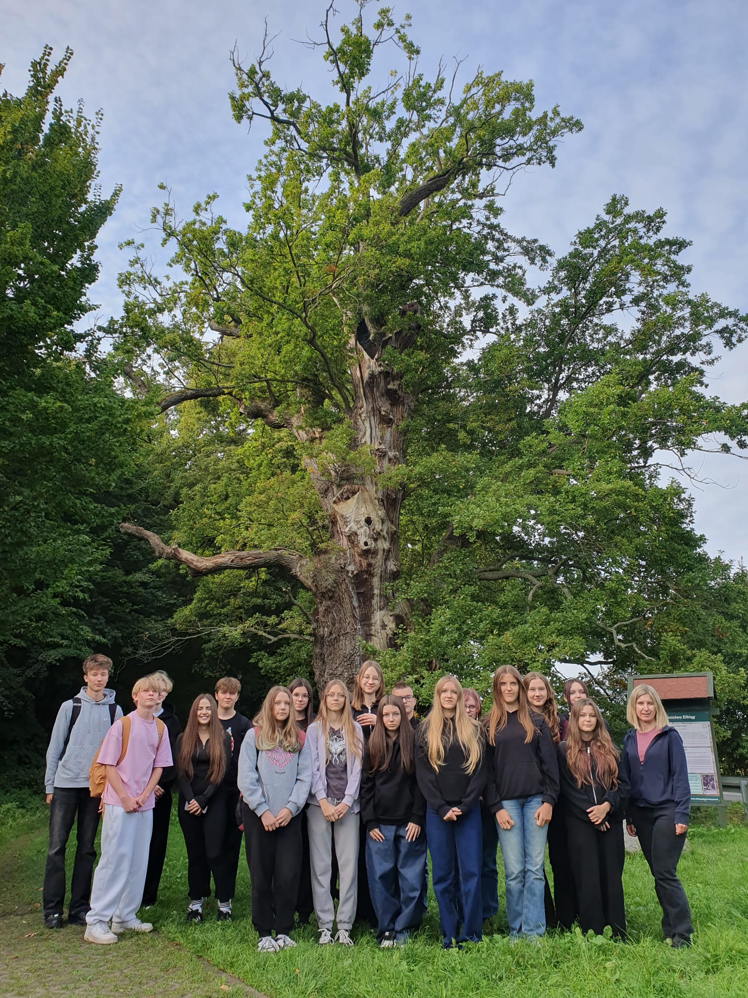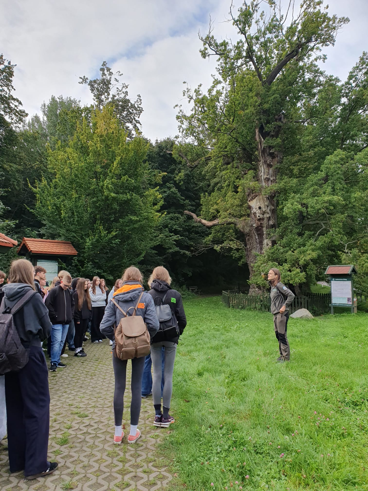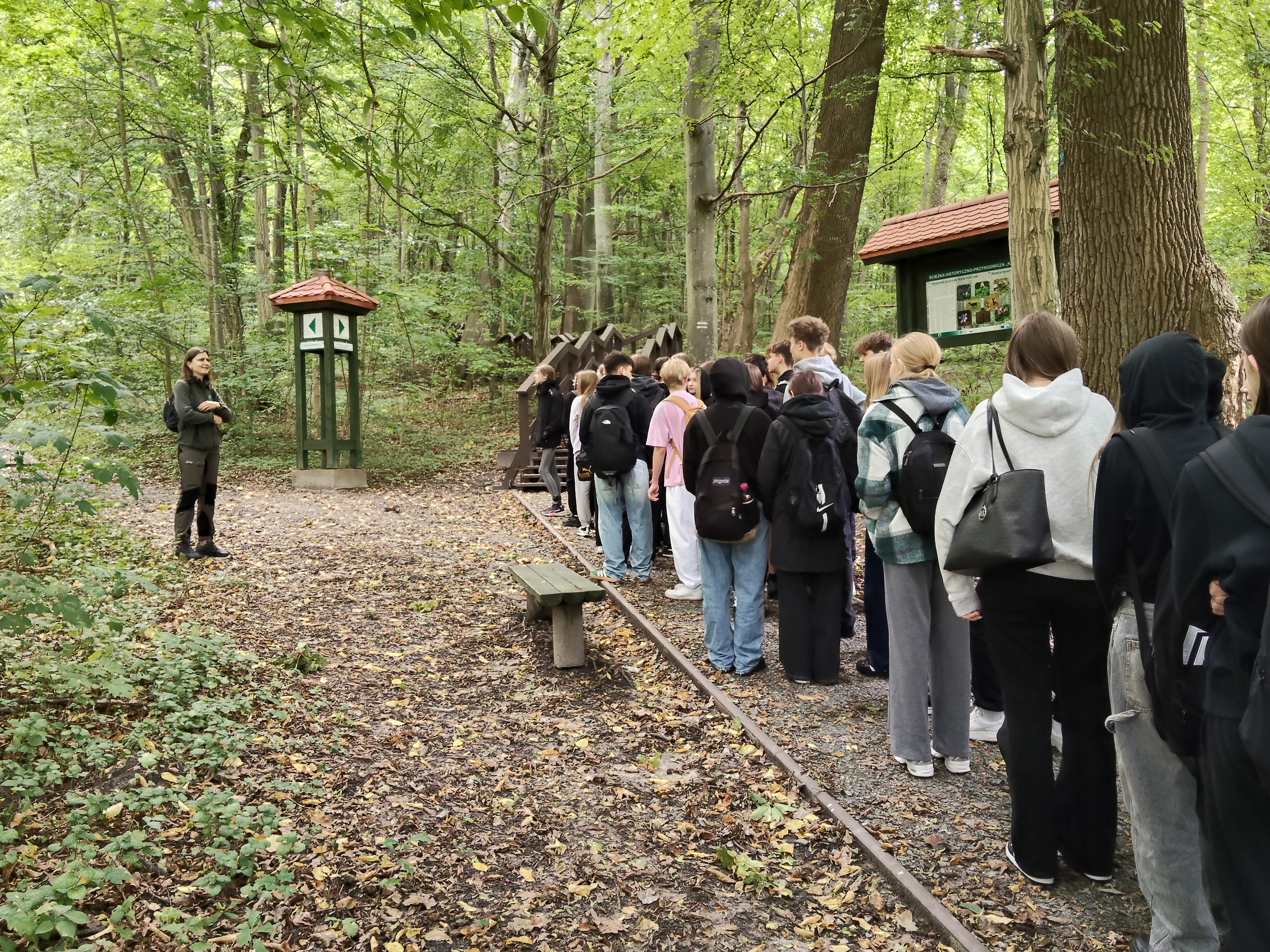18 września 2025 r. uczniowie klas 1b i 1c LO wzięli udział w wycieczce do Kadyn. Na miejscu uczestniczyli w zajęciach przyrodniczych prowadzonych przez panią Martę – pracownicę Parku Krajobrazowego Wysoczyzny Elbląskiej. Podczas spaceru po rezerwacie „Kadyński Las” opowiadała ona o gatunkach drzew charakterystycznych dla lokalnej flory. Kolejnym punktem programu była gra terenowa, w czasie której uczniowie, posługując się mapą, odnajdywali wyznaczone miejsca i wykonywali różne zadania. Aktywność ta nie tylko pozwoliła poznać historię i uroki Kadyn, lecz także sprzyjała integracji, stanowiąc świetną okazję do lepszego poznania się uczniów.