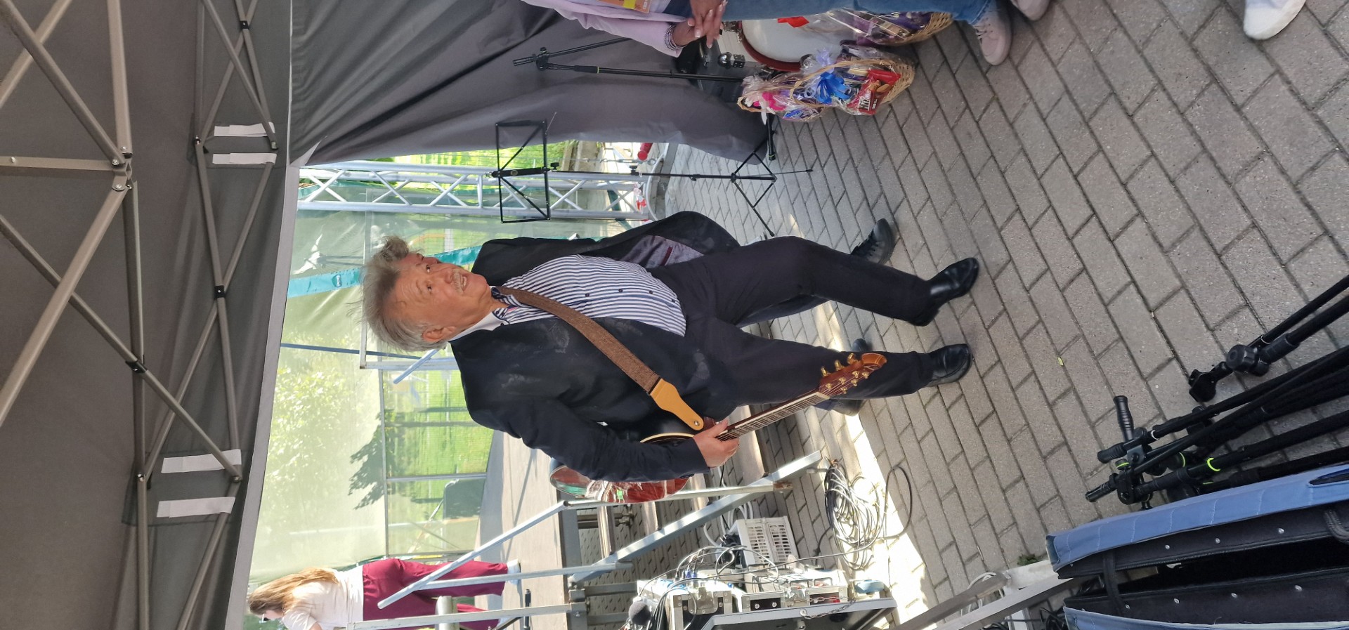 Mieszkańcy Domu Pomocy Społecznej w Tolkmicku tylko częściowo zanurzyli się w tej feerycznej atmosferze, albowiem wybraliśmy się na imprezę nieco później, przed 13-tą, gdyż naszym głównym celem było uczestnictwo w koncercie gwiazdy przeglądu – przesławnego i przesympatycznego Andrzeja Rybińskiego. Wmieszaliśmy się w barwnie przystrojony tłumek, zajęliśmy dogodne miejsca w cieniu i blisko sceny, a wkrótce doczekaliśmy się entrée naszego idola.