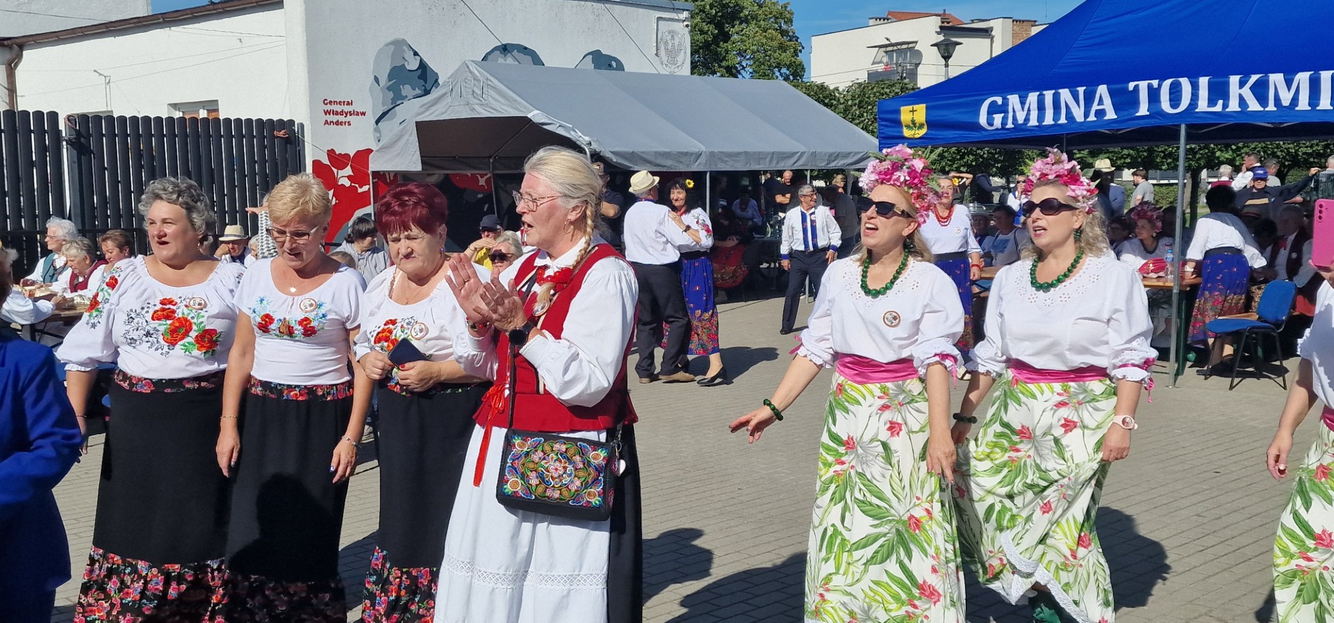 O dziwo! na koniec sprezentowało nam wszystkim przyjemny weekend, zupełnie inaczej niż miało to miejsce w lipcu czy sierpniu. Ta okoliczność okazała się bardzo sprzyjająca dla organizatorów plenerowej imprezy taneczno-wokalnej, która odbyła się w minioną sobotę, 20 września, na placu przed Miejsko-Gminnym Ośrodkiem Kultury w Tolkmicku. Odbył się tam dwudziesty Przegląd Zespołów Śpiewaczych i Kapel Ludowych Warmii i Mazur pod hasłem „Senioriada 2025”. Mający swoje początki w nadzalewowym mieście, powrócił tu po latach w jubileuszowej odsłonie, gromadząc blisko siebie pięknie przystrojone w kolorowe, tradycyjne stroje panie oraz panów, którzy przybyli do nas m.in. z: Korsz, Sępopola, Jezioran, Kraszewa i Lidzbarka Warmińskiego, Sterławek Wielkich i Rynu, a nawet z tak odległych miejscowości, jak Chociwle, Strzelce czy Kacprówek. Nie zabrakło artystów z pobliskich okolic czyli z Braniewa, Miłakowa, Tolkmicka, Suchacza, Zalesia i Pomorskiej Wsi.
