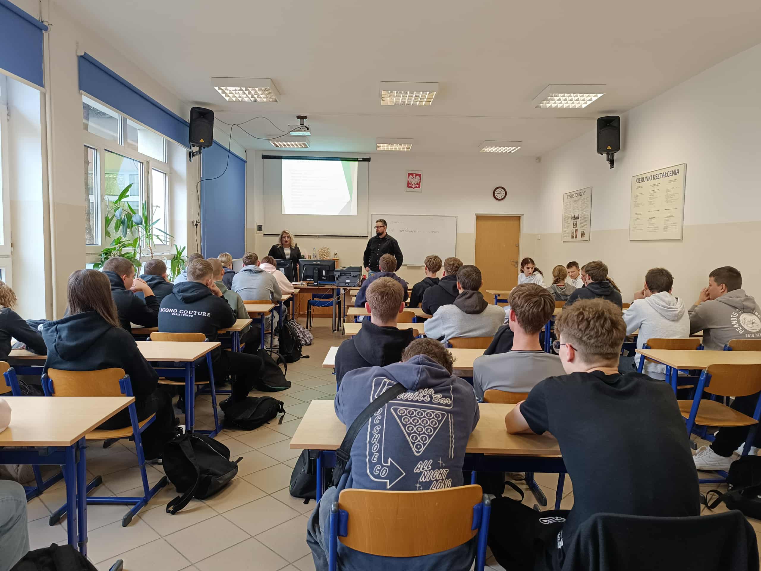 W dniach 20–26 października 2025 r. Zespół Szkół Ekonomicznych i Technicznych w Pasłęku włączył się w obchody Ogólnopolskiego Tygodnia Kariery, który w tym roku odbywa się pod hasłem „Siła relacji w erze samotności”. 20 października doradca zawodowy ZSEiT uczestniczył w konferencji inaugurującej Warmińsko-Mazurski Tydzień Kariery 2025 w Olsztynie pt. „Siła relacji międzyludzkich – jak nie dać się samotności”. W dniach 22–23 października odbyły się spotkania uczniów klas: IV liceum ogólnokształcącego – Oddział Przygotowania Wojskowego, II i V technikum kształcącego w zawodach: technik agrobiznesu oraz technik żywienia i usług gastronomicznych, a także III klas branżowej szkoły I stopnia kształcącej w zawodach: mechanik pojazdów samochodowych, mechanik-operator pojazdów i maszyn rolniczych oraz kucharz. Spotkania poprowadzili przedstawiciele Powiatowego Urzędu Pracy w Elblągu – Filia w Pasłęku, pani Marzena Plawgo i pan Jerzy Łucewicz. Rozmowy o rynku pracy, planowaniu kariery i relacjach zawodowych spotkały się z dużym zainteresowaniem młodzieży. Uczniowie uczestniczyli także w zajęciach z wychowawcami w ramach OTK pod hasłem „Siła relacji w erze samotności”. Dziękujemy wszystkim za zaangażowanie i aktywny udział w tegorocznym Tygodniu Kariery!