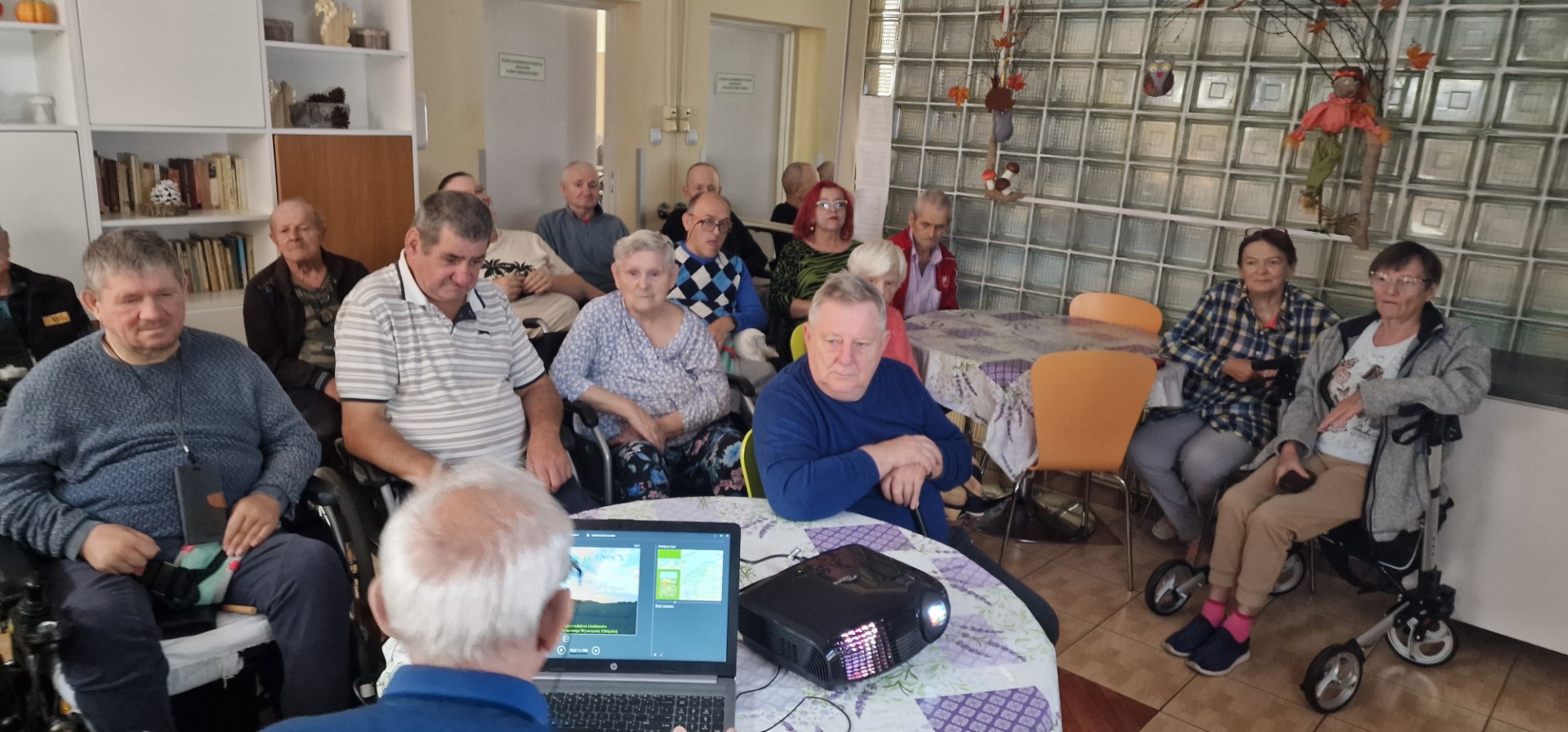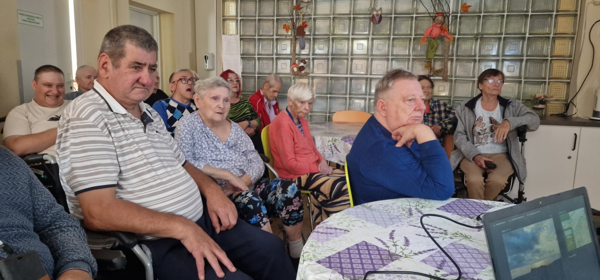 28 października, we wtorek, mieszkańcy Domu Pomocy Społecznej w Tolkmicku spotkali się z Panem Zbigniewem Zagrodzkim, pracownikiem Parku Krajobrazowego Wysoczyzny Elbląskiej, naszym dobrym znajomym, z którym mieliśmy przyjemność spędzać pożytecznie czas już dwukrotnie – we wrześniu 2024 roku przy domu podcieniowym „Haus Elfriede” w Kamionku Wielkim oraz podczas ostatnio podziwianych pastelowych krajobrazów roztaczających się z punktu widokowego w Tolkmicku. Tak wcześniej, jak i teraz, zachwycaliśmy się malowniczością naszych okolic, a także wnikaliśmy w tajniki niesamowicie zdumiewającego życia ptaków.