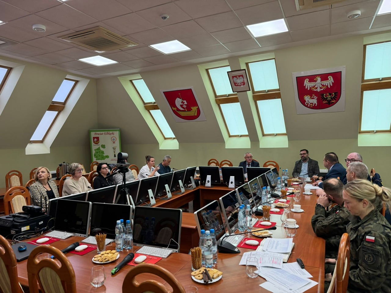 W dniu dzisiejszym, tj. 30 października br. w Starostwie Powiatowym w Elblągu odbyło się szkolenie poświęcone doskonaleniu współdziałania administracji publicznej z Siłami Zbrojnymi RP. Szkolenie, które poprowadzili przedstawiciele 43 Batalionu Obrony Pogranicza, miało na celu zapoznanie uczestników z procedurami reagowania kryzysowego oraz zasadami współpracy w sytuacjach nadzwyczajnych. W spotkaniu wzięli udział przedstawiciele gmin powiatu elbląskiego, którzy mieli okazję omówić m.in. ustawowe zadania Sił Zbrojnych RP w zakresie reagowania na kryzysy oraz zasady wnioskowania o użycie Sił Zbrojnych w sytuacjach kryzysowych. Podczas szkolenia zaprezentowano również plecak ewakuacyjny, który stanowi ważny element przygotowań w sytuacjach kryzysowych.