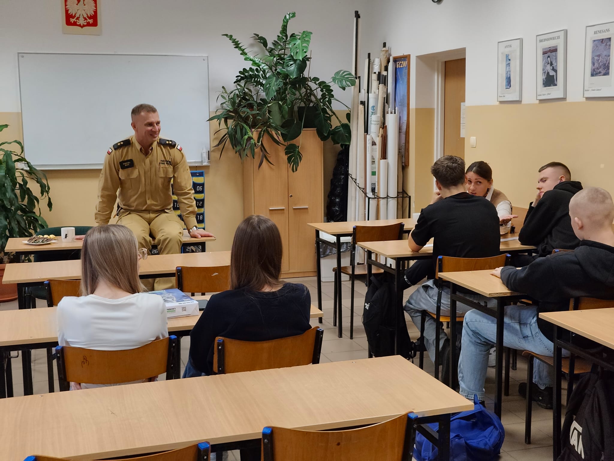Gościem ZSEiT w Pasłęku był pan Andrzej Bicki, obecnie młodszy kapitan Państwowej Straży Pożarnej w Olsztynie. To absolwent Technikum Ochrony Środowiska – kierunku popularnego w minionych dekadach. W latach szkolnych aktywny sportowiec, który, jak sam przyznaje, nie był prymusem, ponieważ skupiał się na tym, co naprawdę go pasjonowało.