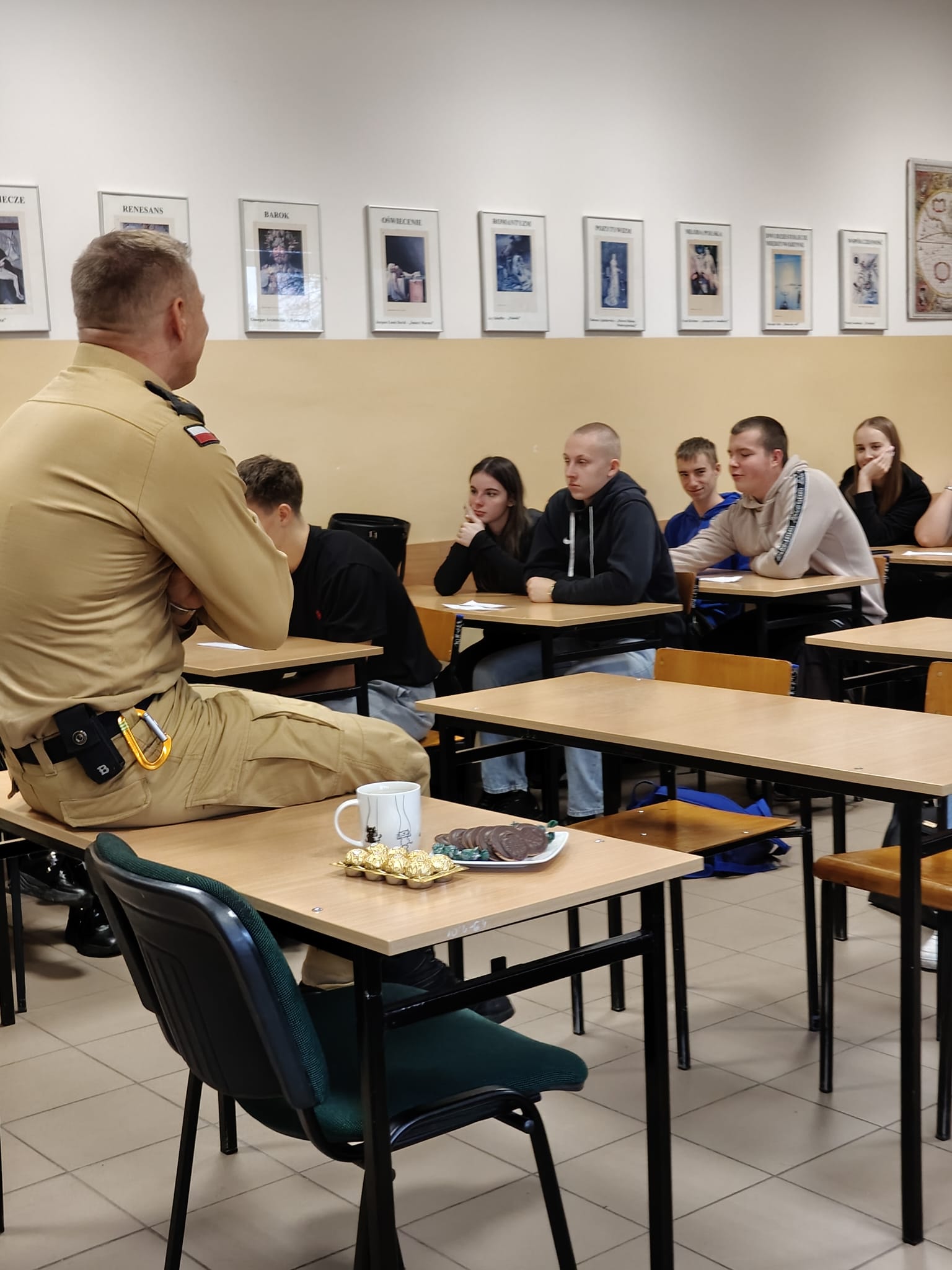 Podczas spotkania uczniowie zadawali wiele pytań – początkowo oficjalnych, później coraz bardziej swobodnych. Interesowały ich zarówno codzienność szkolna z dawnych lat, jak i to, jak radzić sobie z trudnościami, brakiem motywacji czy niechęcią do niektórych przedmiotów. Pan Bicki podkreślał, że kluczowe jest spotkać pedagogów, którzy potrafią dostrzec potencjał ucznia i w niego uwierzyć – bo to pierwszy krok do tego, by zacząć wierzyć w siebie.