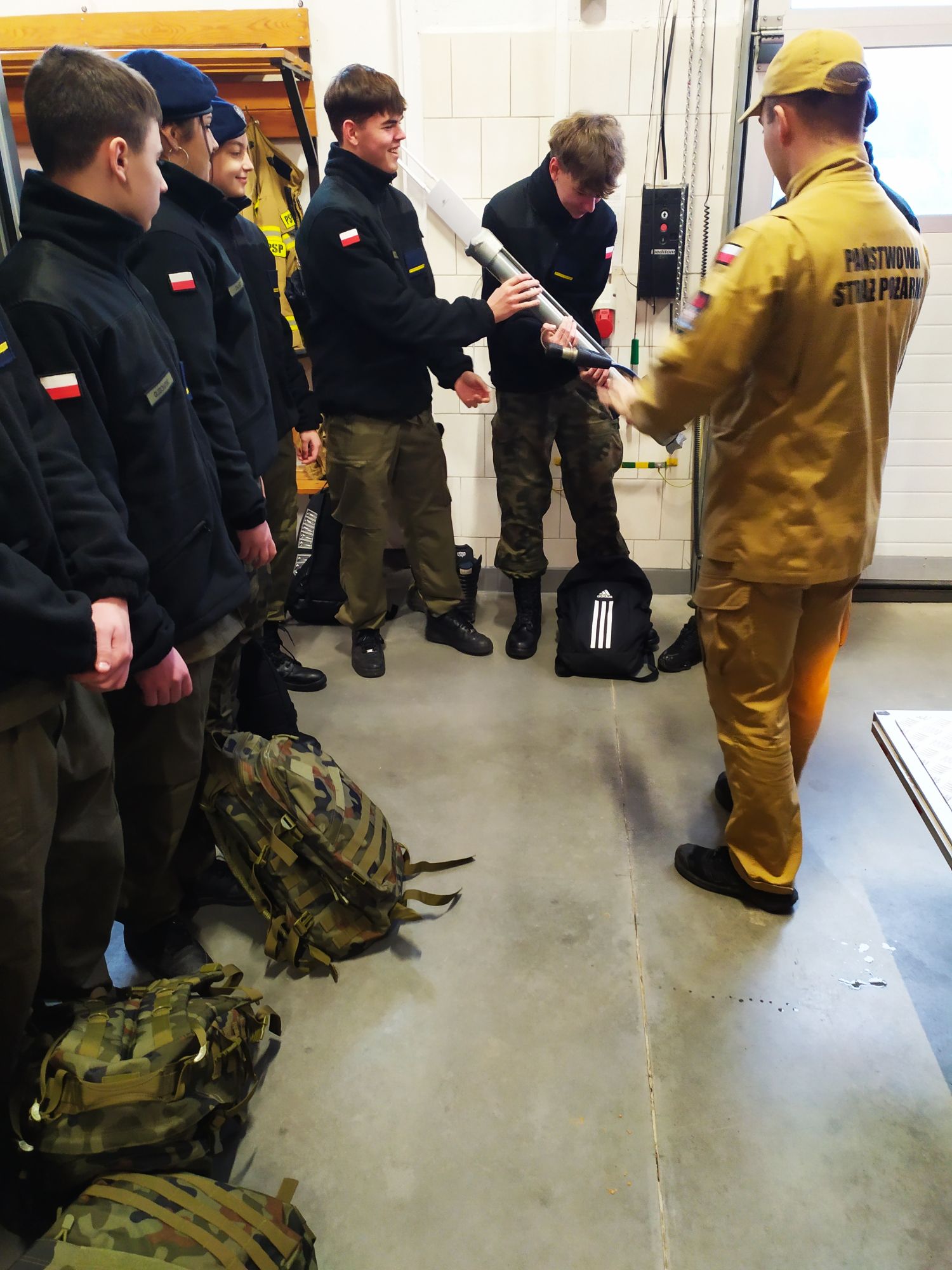Celem wizyty było zapoznanie uczestników z zakresem obowiązków, znaczeniem oraz specyfiką służby w Państwowej Straży Pożarnej (PSP).