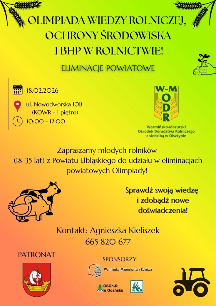 WarmińskMazurski Ośrodek Doradztwa Rolniczego w Olsztynie zaprasza do udziału w powiatowych eliminacjach "Olimpiady wiedzy roolniczej, ochrona środowiska i BHP w rolnictwie".