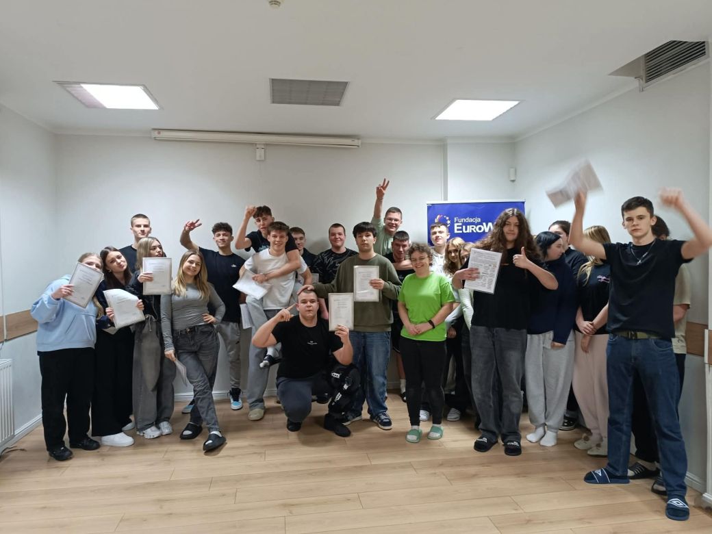 Oprócz nauki nie zabrakło także dobrej zabawy i integracji. Zajęcia często odbywały się w formie pracy w grupach, co sprzyjało współpracy, rozwijaniu umiejętności komunikacyjnych oraz budowaniu relacji między uczestnikami. Wspólne gry, zadania i aktywności sprawiły, że każdy mógł poczuć się częścią zespołu i przełamać barierę językową.