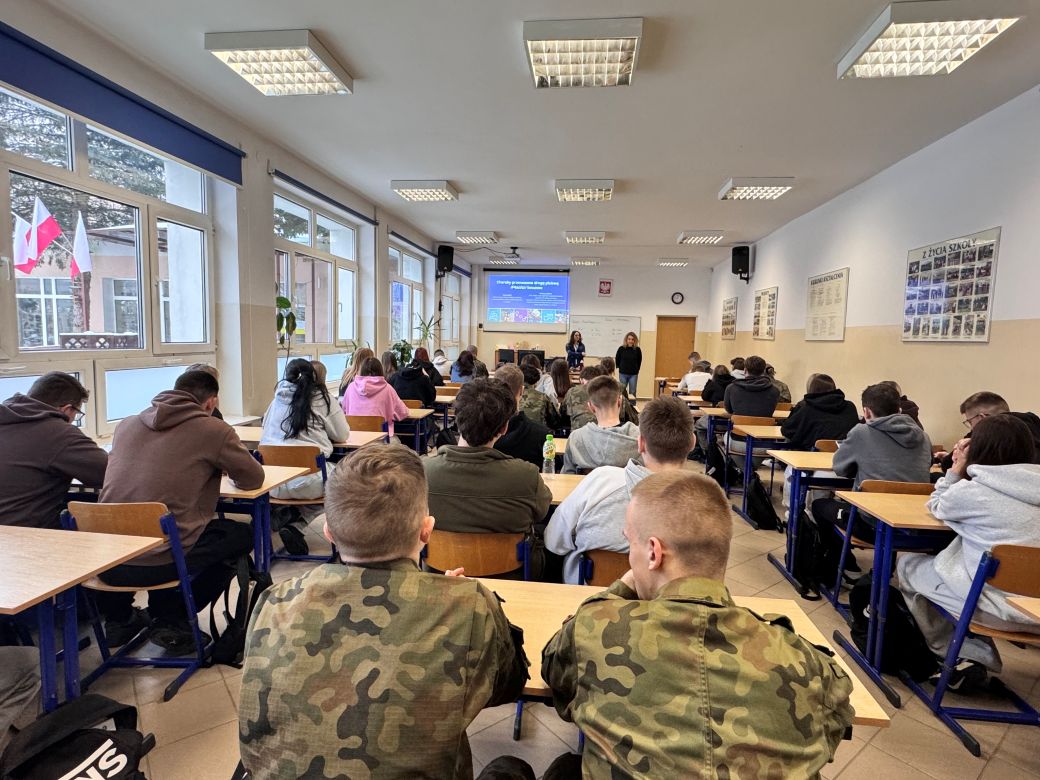 W ramach projektu #MłodziŚwiadomi pracownicy Powiatowej Stacji Sanitarno-Epidemiologicznej w Elblągu przeprowadzili 10 lutego 2026 r. zajęcia dla uczniów klas trzecich liceum i technikum w Zespole Szkół Ekonomicznych i Technicznych w Pasłęku.