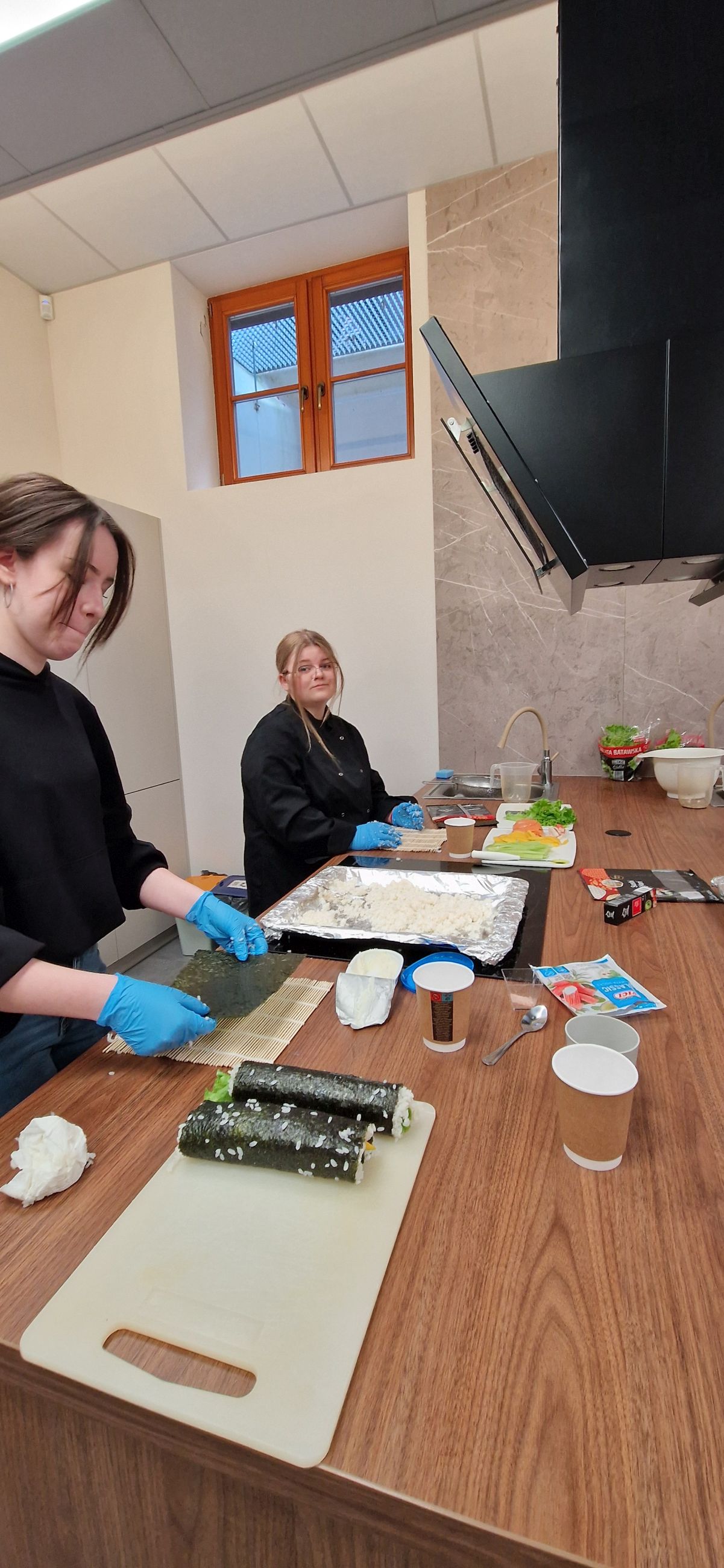 Atmosfera podczas zajęć była bardzo przyjazna i sprzyjała nauce. Dzięki temu każdy mógł poczuć się pewniej i swobodniej tworzyć własne kompozycje sushi.