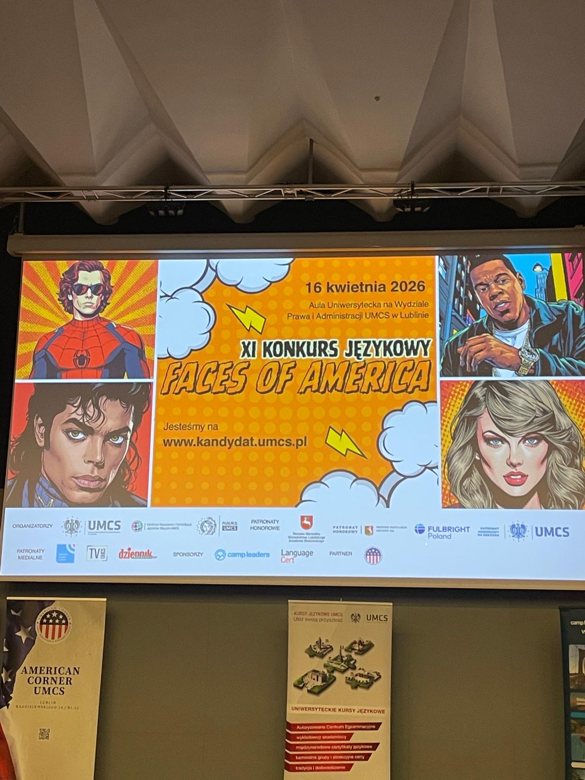 16 kwietnia 2026 roku troje uczniów Zespołu Szkół w Pasłęku – Nikola Szumiel, Natalia Młynarczyk oraz Maciej Rapacki – reprezentowało szkołę w konkursie „Faces of America”, który odbył się na Uniwersytecie Marii Curie-Skłodowskiej w Lublinie.
