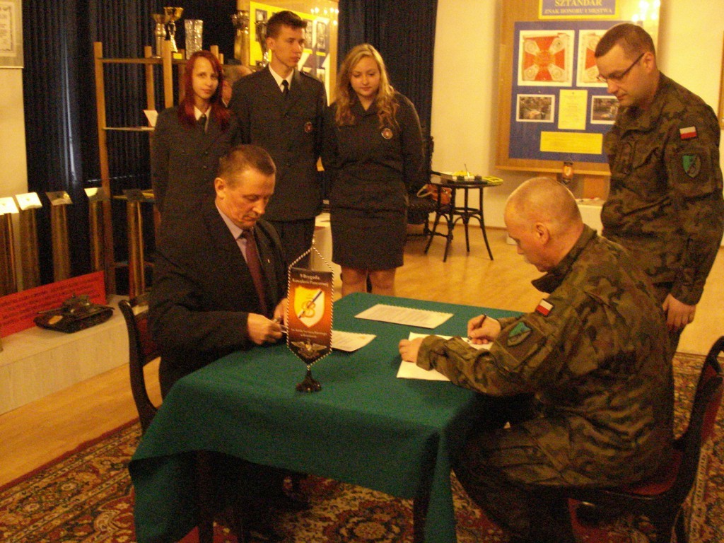 Szkoła współpracuje z Brygadą od 2009 r., ale w związku z reorganizacją Sił Zbrojnych zmiany uległy niektóre przepisy, stąd wynikła potrzeba podpisania nowego zaktualizowanego porozumienia podpisały je także inne szkoły współpracujące z Brygadą). Aktu tego dokonano w Sali Tradycji Brygady w obecności delegacji uczniów /kadetów/. Zaszczytu tego dostąpili: Aneta Chojecka, Julia Anigacz oraz Jacek Włodarczyk.
