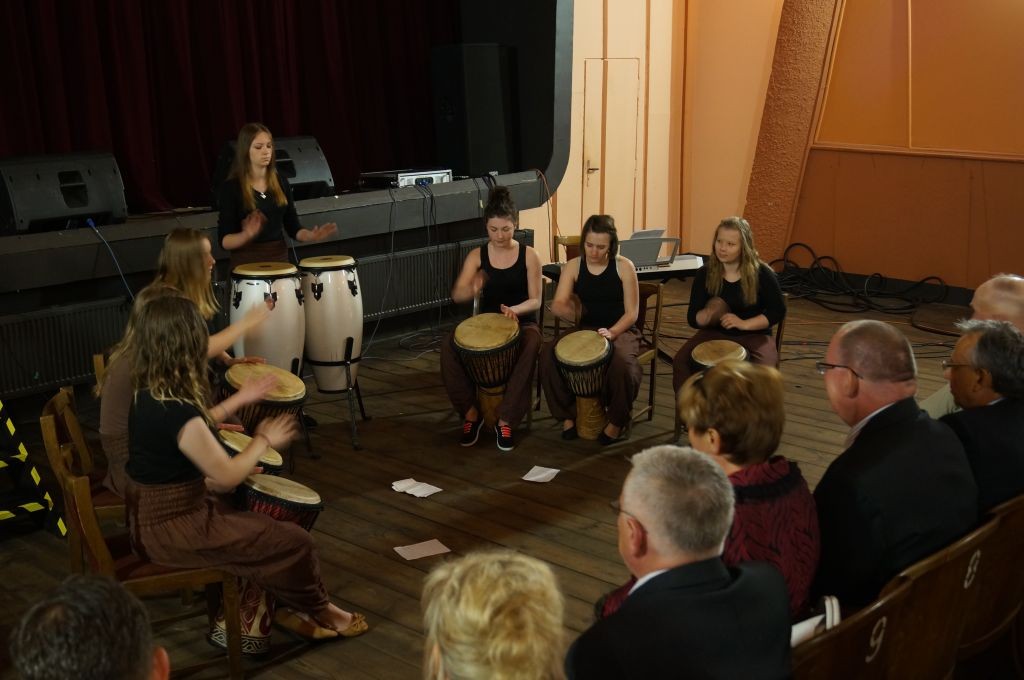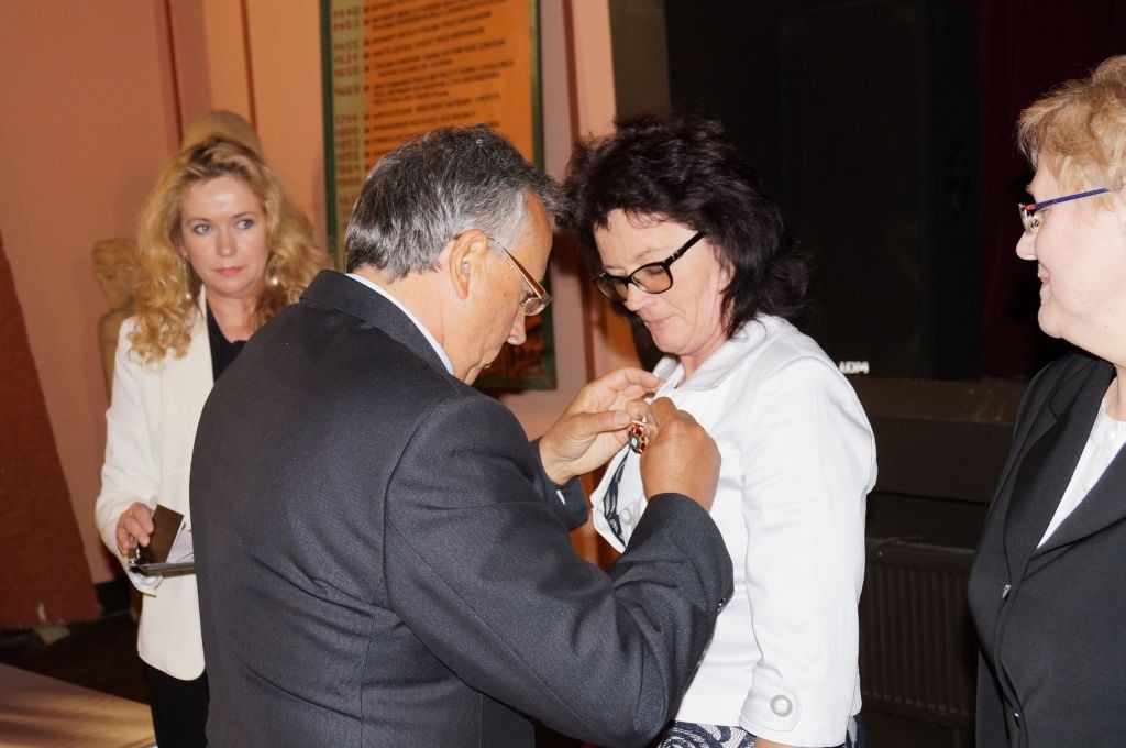 Uroczystość otworzył efektowny występ grupy bębniarskiej z Gimnazjum w Młynarach pod artystyczną opieką Dominiki Zabiełło. Po okolicznościowych wystąpieniach starosty Sławomira Jezierskiego i burmistrza Młynar Ryszarda Zająca zostały wręczone odznaki honorowe „Zasłużony dla Kultury Polskiej”, które Minister Kultury i Dziedzictwa Narodowego przyznał Renacie Biernackiej, Barbarze Grzeszczak i Barbarze Krajnik.