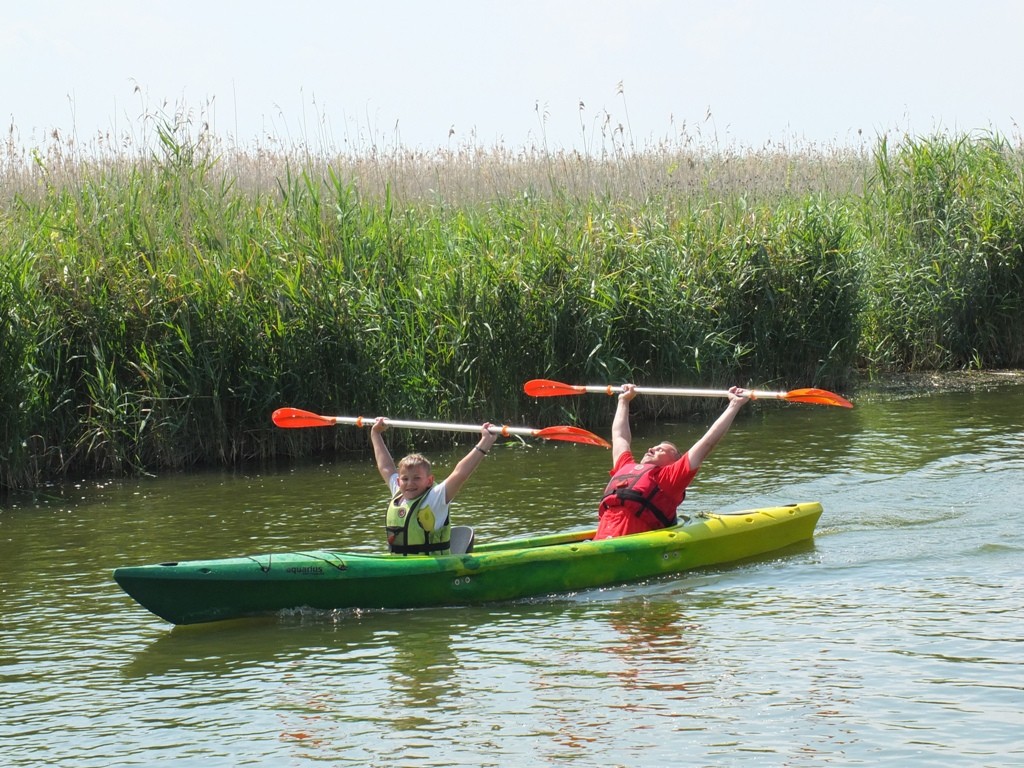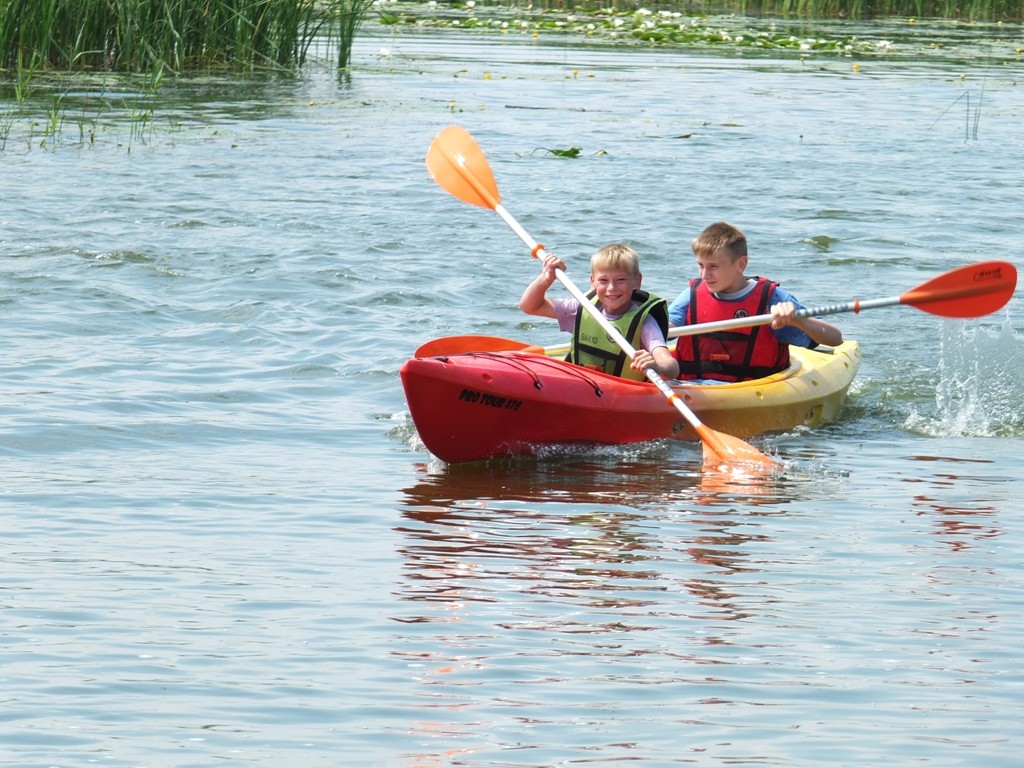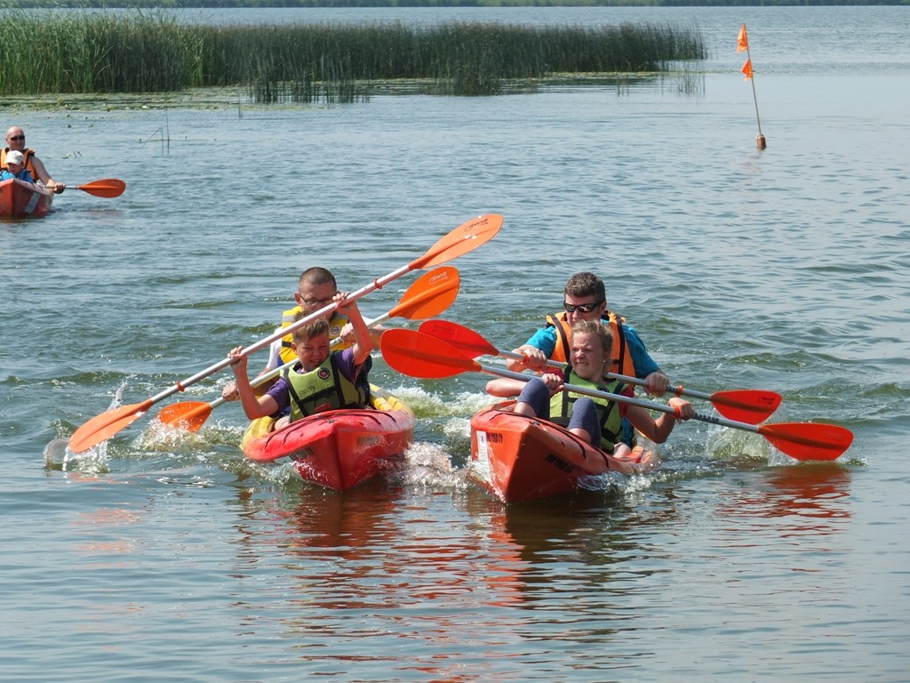 Największą atrakcją pikniku były rodzinne wyścigi kajakowe, w których startowały dwuosobowe zespoły złożone z dziecka uczestniczącego w warsztatach wraz z jednym z rodziców, rodzeństwa lub wychowawcą/instruktorem. Bardzo emocjonujący był wyścig finałowy w którym uczestniczyło sześć osad, co na ograniczonym akwenie Stanicy Wodnej zagwarantowało dodatkowe emocje. Na szczególną uwagę zasługuje postawa Kacpra Popiołka najmłodszego uczestnika warsztatów, który w czasie pikniku przełamał swoje obawy przed pływaniem kajakiem i zajął drugie miejsce w kajakowych wyścigach indywidualnych.
