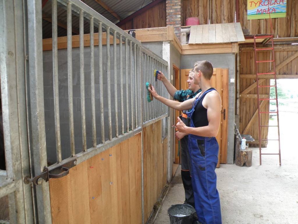 Uczniowie mogli przekonać się, jak dużo prac gospodarskich jest do wykonania w takim gospodarstwie oraz poznali sposób zarządzania agroturystycznym biznesem. Podczas 10 - dniowej praktyki zawodowej chłopcy uczestniczyli w pracach, w gospodarstwie i przy zwierzętach: wykonywali drobne prace naprawcze sprzętu i ogrodzenia dla koni, malowali ogrodzenie gospodarstwa oraz elementy placu zabaw, remontowali bryczki i przeszkody dla koni, przygotowywali sprzęt turystyczny, wyrównywali teren w ujeżdżalni, zwozili drzewo z lasu i układali je w stodole, porządkowali stajnię, karmili i siodłali konie, prowadzili w towarzystwie woźnicy wycieczki konne bryczką po okolicy, kosili trawę, zwozili siano z pola, a także towarzyszyli gościom w zwiedzaniu gospodarstwa. Mieli również możliwość korzystania ze sprzętu rolniczego oraz warsztatu narzędziowego. Uczniowie pod okiem gospodarza przygotowali w stodole „kino na sianie”, z którego goście chętnie korzystali wieczorami. Gospodarz, Pan Tomasz Malecki przedstawił praktykantom ekonomiczną stronę prowadzenia swojego gospodarstwa.