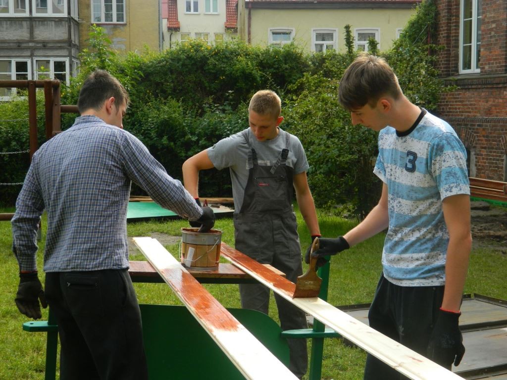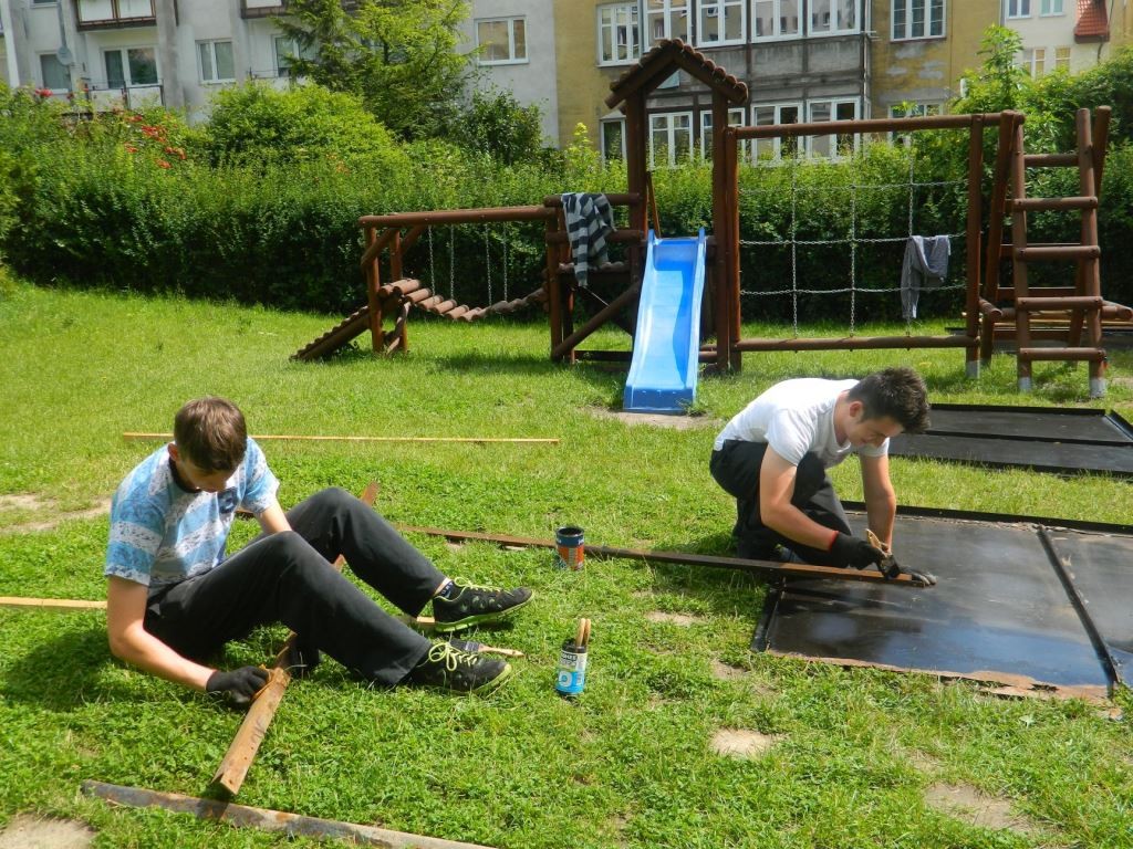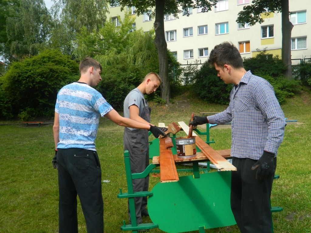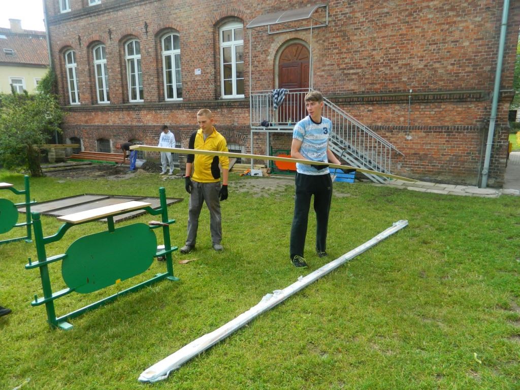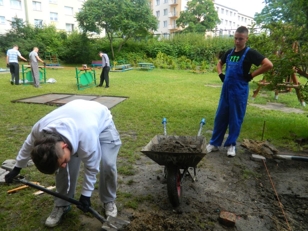 Uczniowie odbyli praktykę zawodową w firmie INWEST TERM – Krzysztof Burak w Elblągu. Praktykanci zostali podzieleni na dwie grupy. Uczniowie kl. II zapoznali się z wykonywaniem podbudowy pod plac z płyt chodnikowych, układaniem obrzeży i płyt chodnikowych, zabezpieczeniem antykorozyjnym powierzchni metalowych, zabezpieczeniem konstrukcji drewnianych, montażem drewnianej okładziny ściennej, montażem stolarki drzewnej, montażem papy podkładowej i gontów. Uczniowie klasy I poszerzyli swoją wiedzę i umiejętności dotyczące następujących zagadnień: piana GAMMO jako alternatywne rozwiązanie ocieplenia poddasza, montaż profili aluminiowych w systemie suchej zabudowy płytami G-K, układanie wełny mineralnej, montaż płyt G-K do profili, montaż ogrodzenia z paneli systemowych. W czasie wolnym młodzież miała możliwość zwiedzania Elbląga, zapoznania się z architekturą Starego Miasta. Uczniowie chętnie grali w ping-ponga i dzielnie kibicowali wybranym reprezentacjom w czasie MŚ w piłce nożnej. Na koniec praktyki zawodowej uczniowie otrzymali zaświadczenia o odbyciu praktyk.
