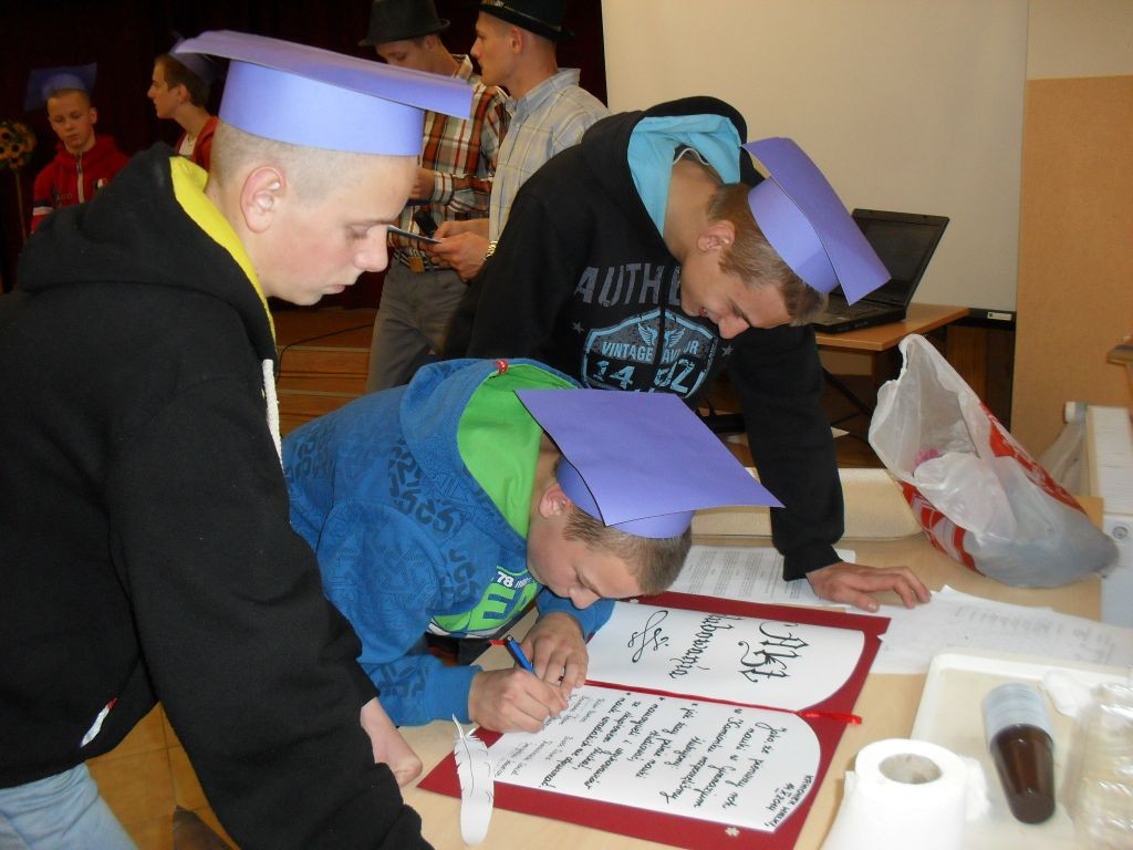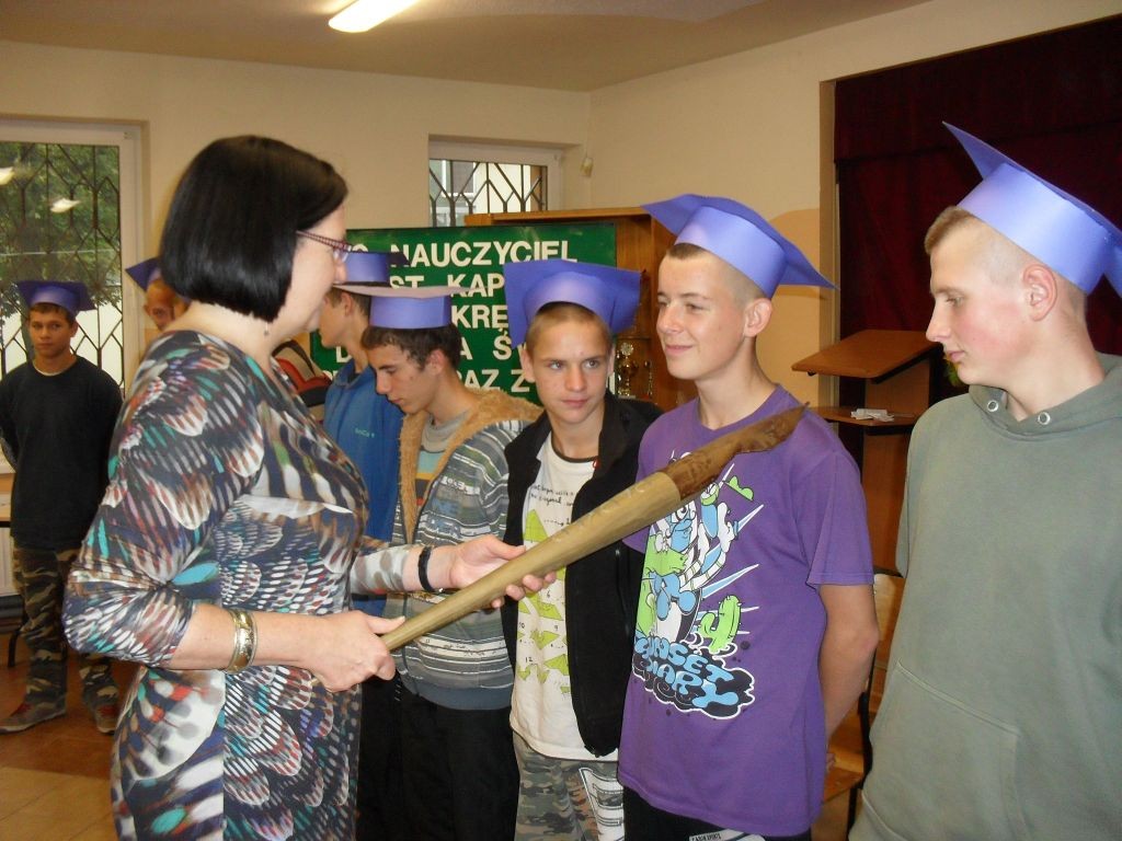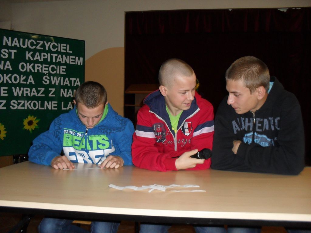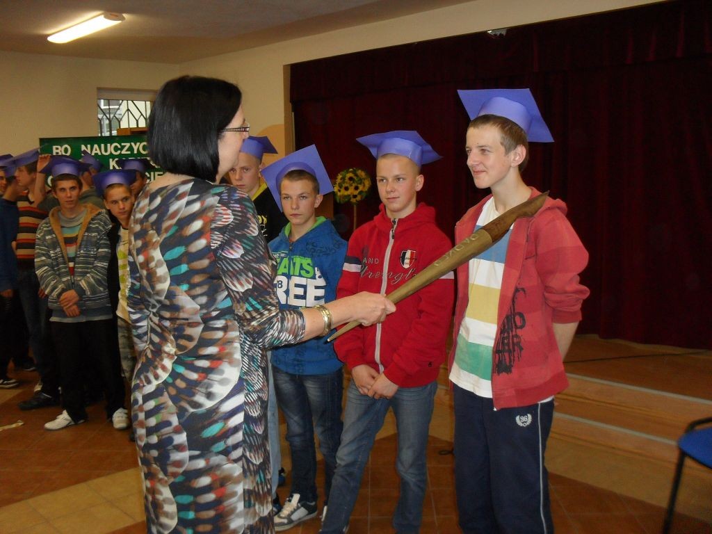 Młodzież przygotowała bogaty program artystyczny oraz drobne prezenty w postaci samodzielnie wyplecionych serduszek dla wszystkich pracowników MOW. Tradycyjnie odbyło się również pasowanie uczniów klas pierwszych na Gimnazjalistę.