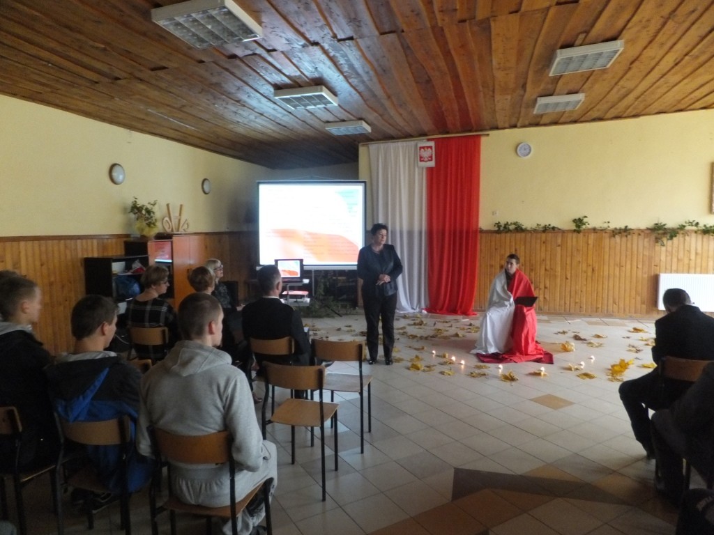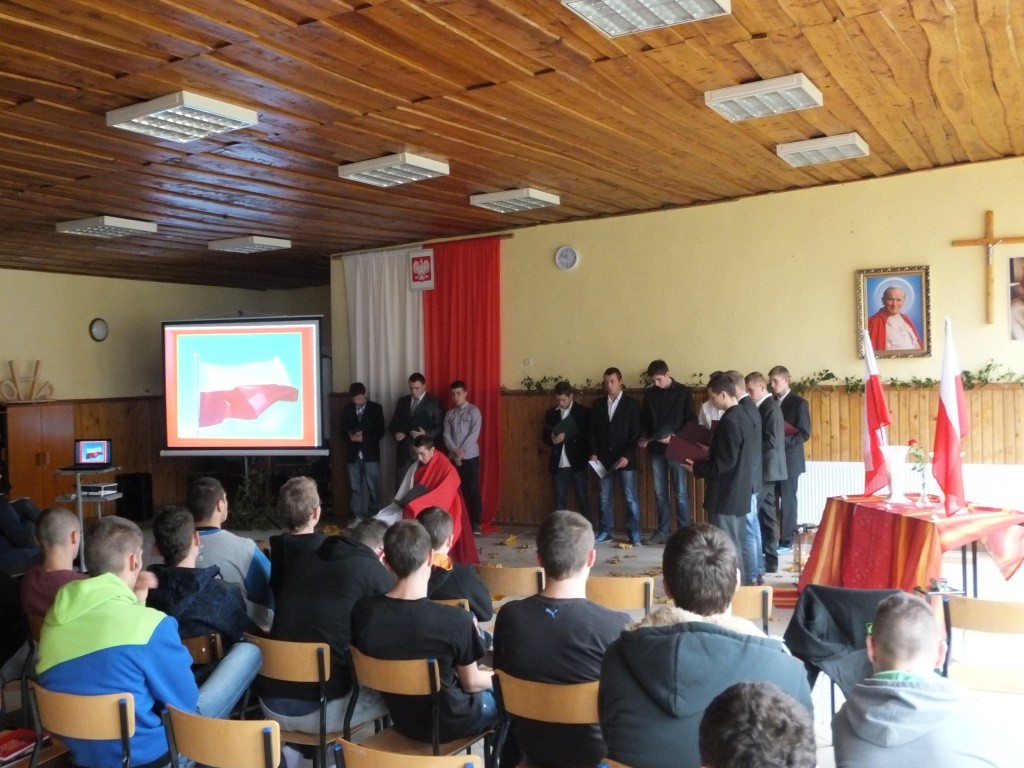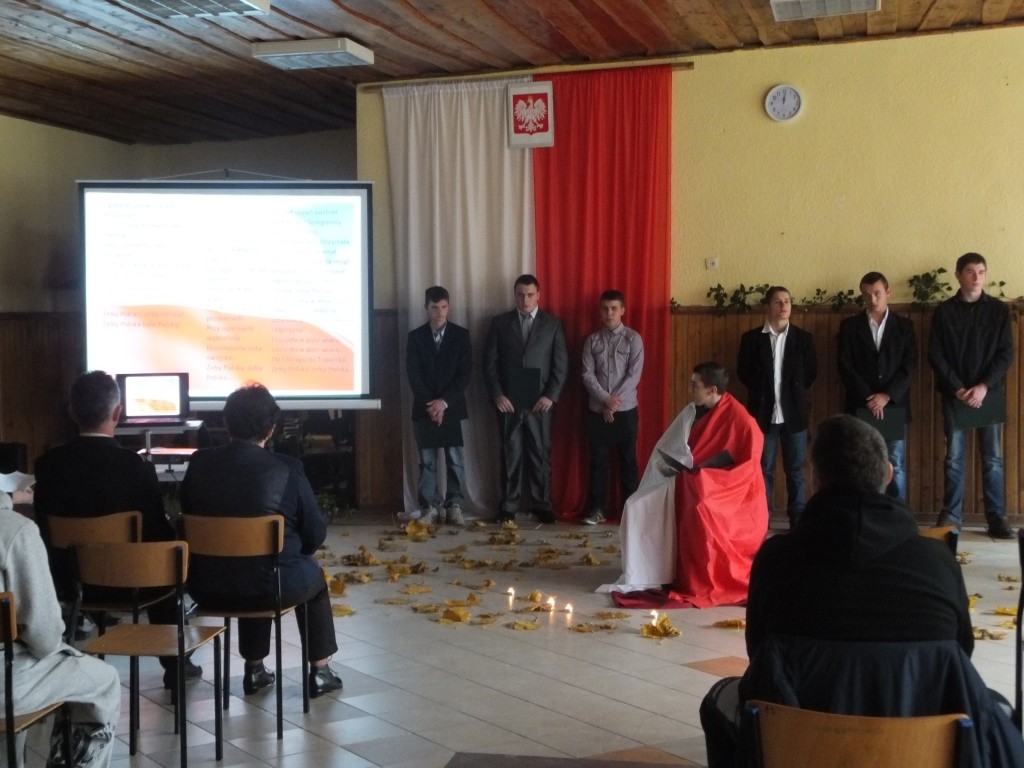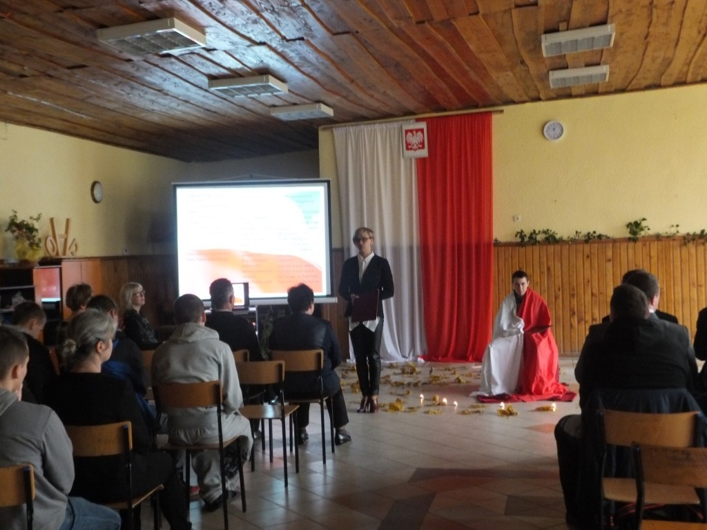 13 listopada w naszej szkole słuchacze w poczuciu radości i dumy z odzyskanej niepodległości świętowali jeden z najważniejszych dni w kalendarzu każdego Polaka. Podczas uroczystości przypomniane zostały lata niewoli ojczyzny, dzieje narodu polskiego w okresie zaborów, krwawo tłumione zrywy narodowowyzwoleńcze, wszystkie działania aż do dnia, w którym wzeszła jutrzenka wolności. Przekazywane treści były przeplatane patriotycznymi pieśniami oraz recytacjami wierszy. Słuchacze wielokrotnie akcentowali fakt, że 11 listopada został uświęcony krwią, męczeństwem i ofiarnością Polaków, którzy dziś są symbolem jedności narodowej i patriotyzmu. Apelowali do swoich kolegów, aby pamiętali, iż wolność raz zdobyta i niepodległość raz osiągnięta nie jest czymś trwałym, tylko czymś danym, co trzeba pielęgnować.