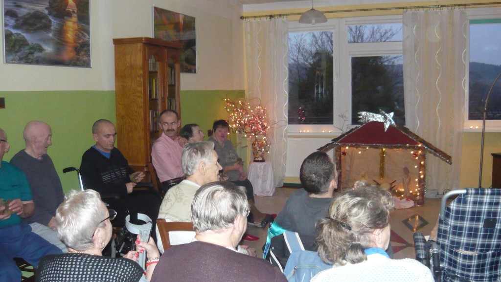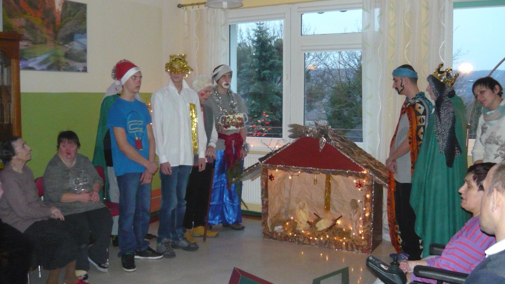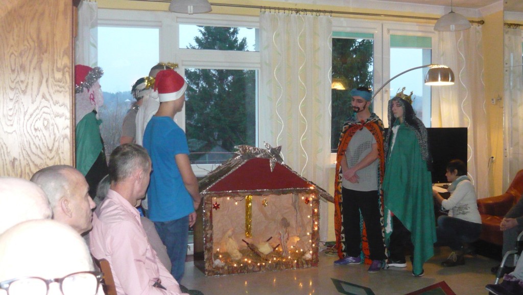 Własnoręcznie przez chłopców zrobiona szopka dodawała wnętrzu uroku. Mieszkańcy wspólnie z chłopcami śpiewali kolędy co sprawiło, że na niejednej twarzy można było zobaczyć uśmiech, a w oku zakręconą łezkę. Na koniec chłopcy wręczyli mieszkańcom własnoręcznie zrobione piękne anioły z papieru, jak również z masy solnej.