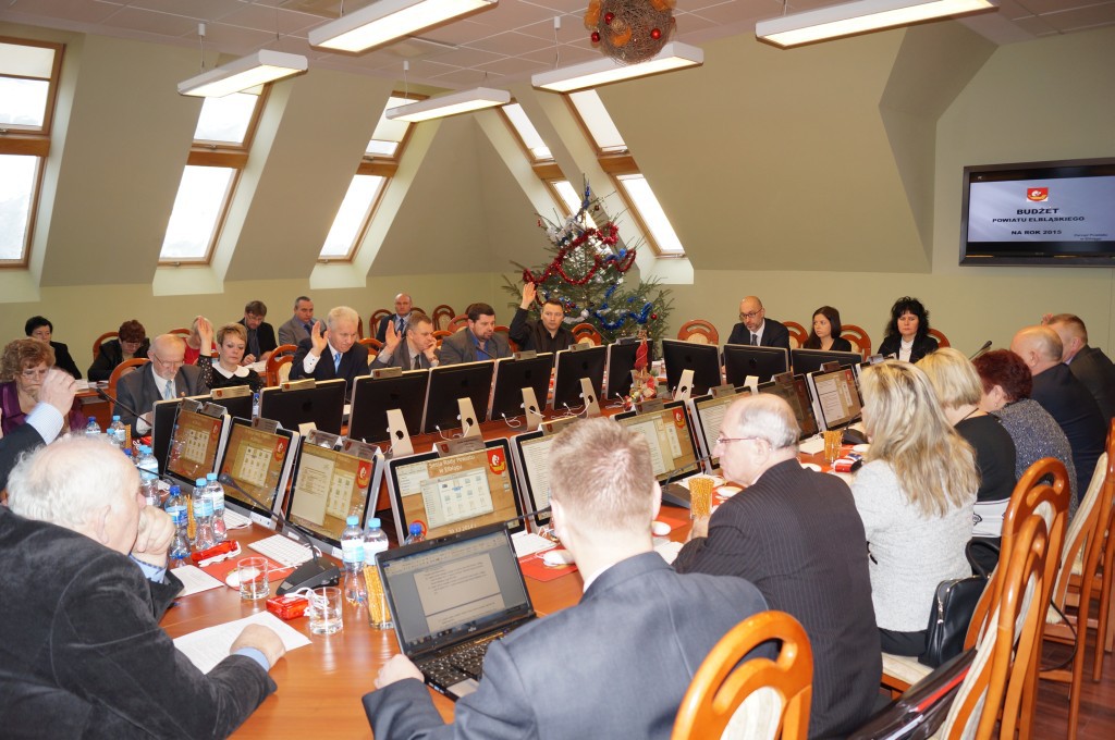 Podczas IV sesji Rady Powiatu w Elblągu w dniu 30 grudnia radni jednogłośnie podjęli uchwały w sprawie budżetu Powiatu Elbląskiego na 2015 rok oraz Wieloletniej Prognozy Finansowej Powiatu Elbląskiego na lata 2015 – 2029.