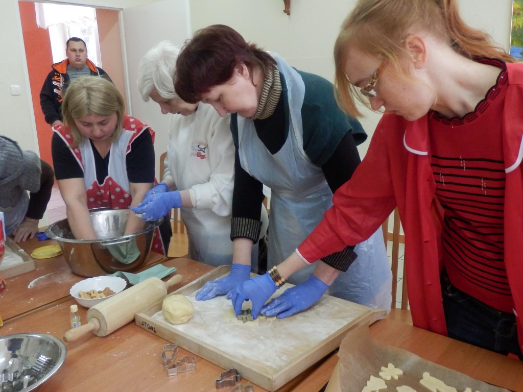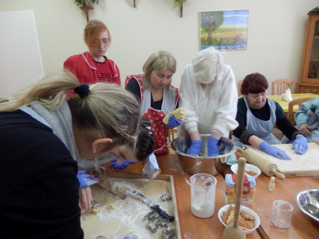 Mieszkanki DPS dzieliły się swoimi wiadomościami i umiejętnościami na temat pieczenia ciasteczek, które wspólnie wykonały z podopiecznymi ŚDS. Następnie uczestnicy ŚDS zaprezentowali się z „anielskim”, zimowym przedstawieniem taneczno–muzycznym. Spotkanie zakończył poczęstunek przy herbacie z degustacją upieczonych ciasteczek, a na pożegnanie podopieczne DPS zostały obdarowane drobnym upominkiem.