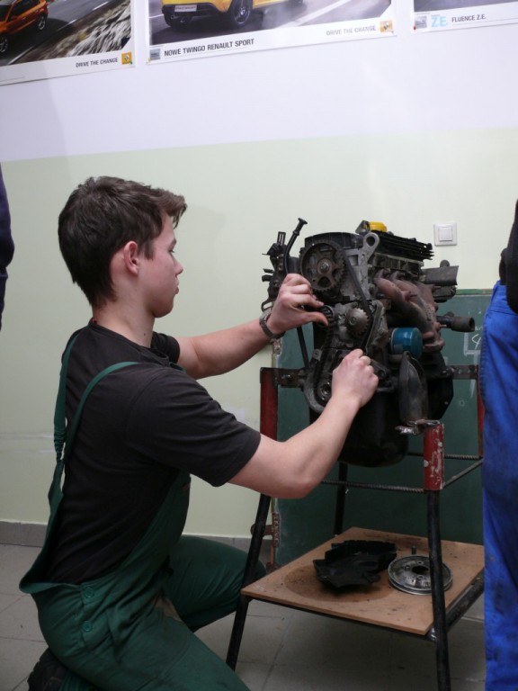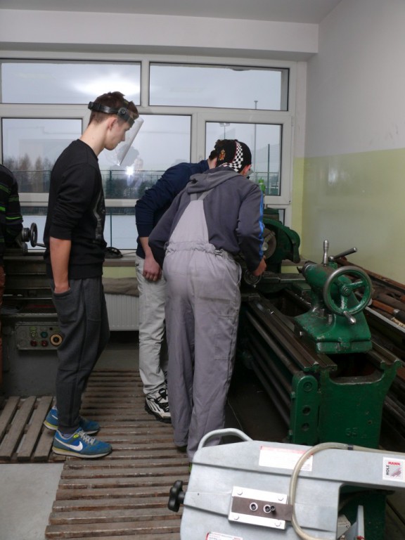 Podczas warsztatów mechaniczno-budowlanych gimnazjaliści mieli zajęcia z obróbki mechanicznej metali i w kuźni. Uczniowie m.in. ustawiali rozrząd silnika, rozkładali na części rozrusznik i alternator, diagnozowali usterki w samochodzie przy pomocy komputera diagnostycznego. Uczniowie podjęli również próbę cekolowania ścian, układania płytek na ścianie i przycinania paneli na piłach. Warsztaty wspomagali uczniowie kl. I-III kształcący się w zawodach mechanicznych i budowlanych. Warsztaty przeprowadzili nauczyciele ZSEiT: Renata Groń, Bogdan Ortman, Jan Połumackanycz, Mariusz Wolski i Andrzej Mizura.