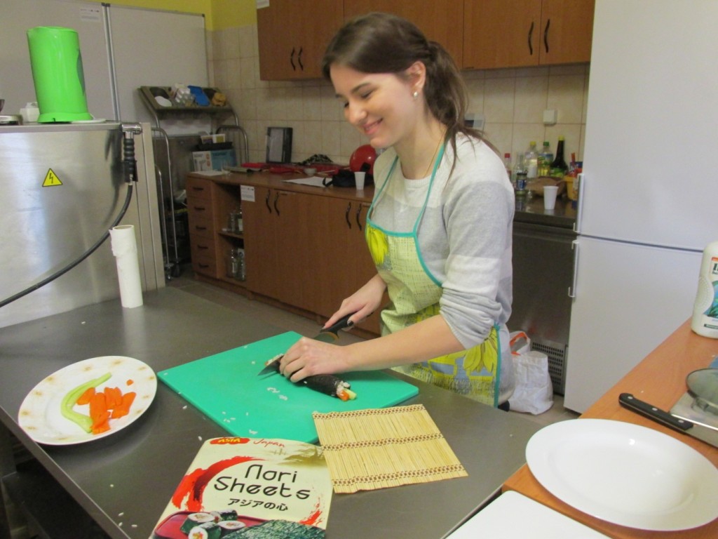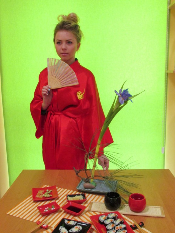Goście z gimnazjum będą mieli okazję poznać zasady obowiązujące w kuchni Japonii i samodzielnie przygotować sushi oraz zaparzyć prawidłowo herbatę po japońsku. Będzie okazja poznać technikę jedzenia pałeczkami. Poznamy podstawy kompozycji ikebany japońskiej sztuki układania kwiatów). Chętne osoby będą mogli zrobić sobie zdjęcie w oryginalnym japońskim kimonie. Chętni poznania sztuki barmańskiej będą mogli samodzielnie przygotować wybrany koktajl. Receptury są sprawdzone i potwierdzone przez VIP-ów, których częstowaliśmy podczas wizyt w naszej szkole.