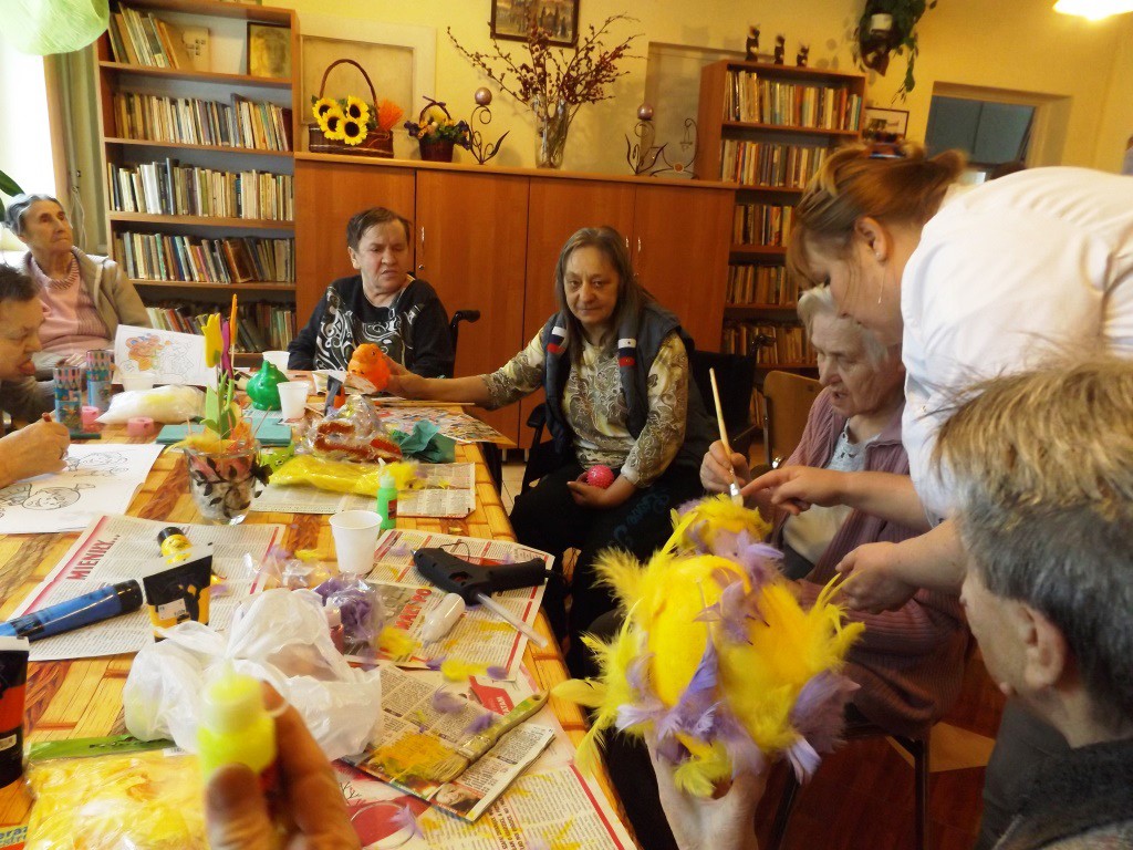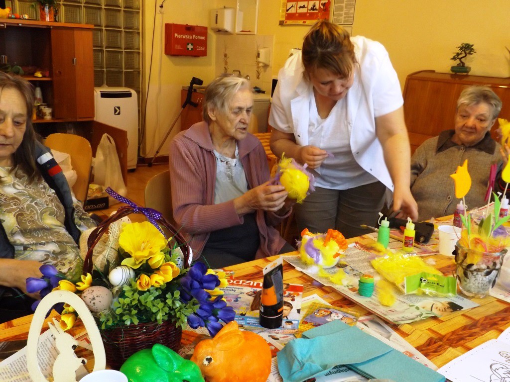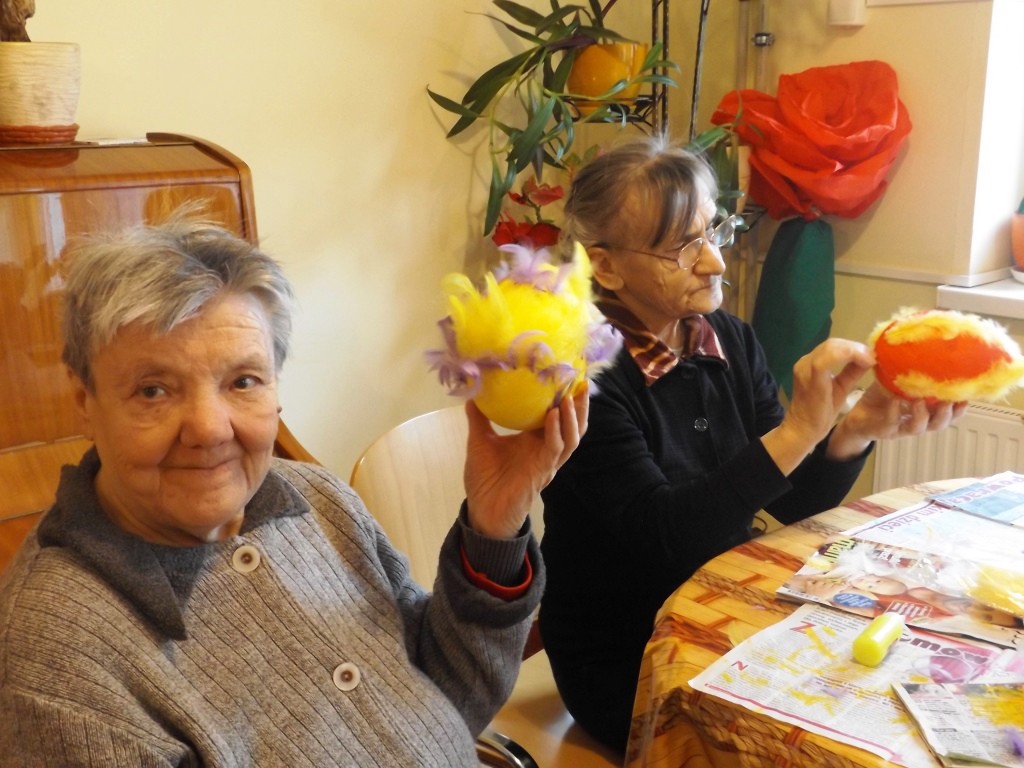 Mieszkańcy Domu Pomocy Społecznej w Tolkmicku w ramach organizowania czasu wolnego rozpoczęli prace nad dekoracjami świątecznymi. Na stolikach kłębiły się kolorowe piórka, cekiny, styropianowe jajka i kurki. Zespołowa praca wprawiła mieszkańców w radosny nastrój.