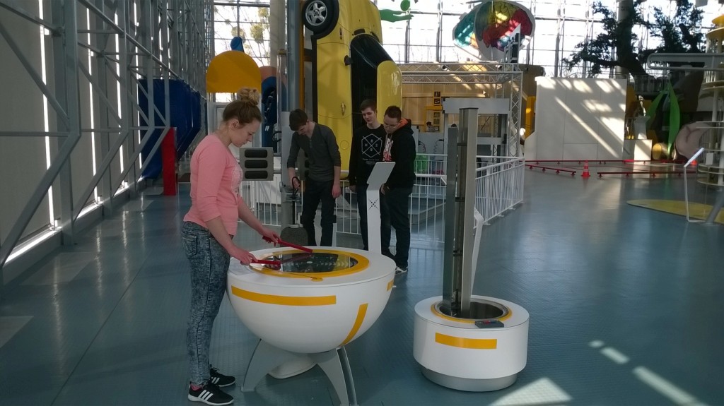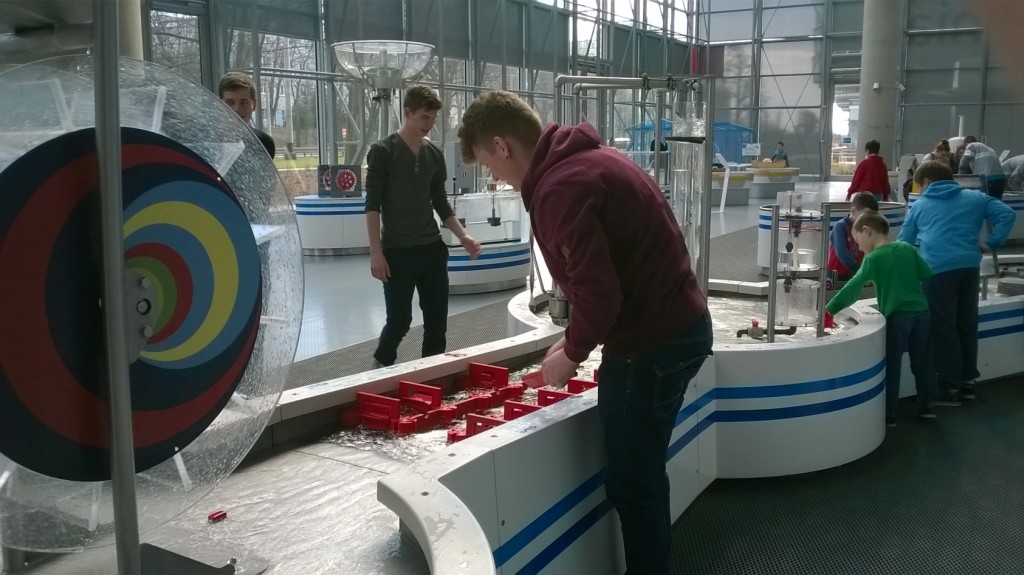 Pierwszy punkt programu wycieczki obejmował pobyt w Centrum Nauki „Eksperyment”, gdzie młodzież spędziła czas na interaktywnych wystawach łączących naukę i zabawę, przeprowadzała doświadczenia i badała zjawiska z różnych dziedzin nauki.