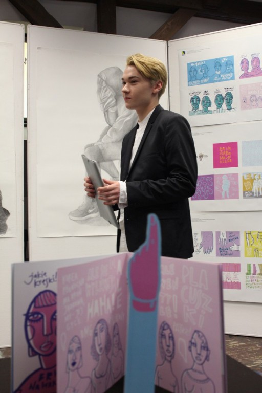 Młodzież nie bała się podejmować odważnych tematów. Zaskakiwali różnorodnością, świeżością spojrzeń i ujęć oraz umiejętnościami warsztatowymi. Prace dyplomowe wykonano pod kierunkiem nauczycieli: Romy Jaruszewskiej z reklamy wizualnej oraz Janusza Kozaka iSylwestra Mazurka z technik graficznych. Oprócz prac dyplomowych uczniowie prezentowali również prace aneksowe z rysunku, malarstwa i trzeciej, wybranej dziedziny.