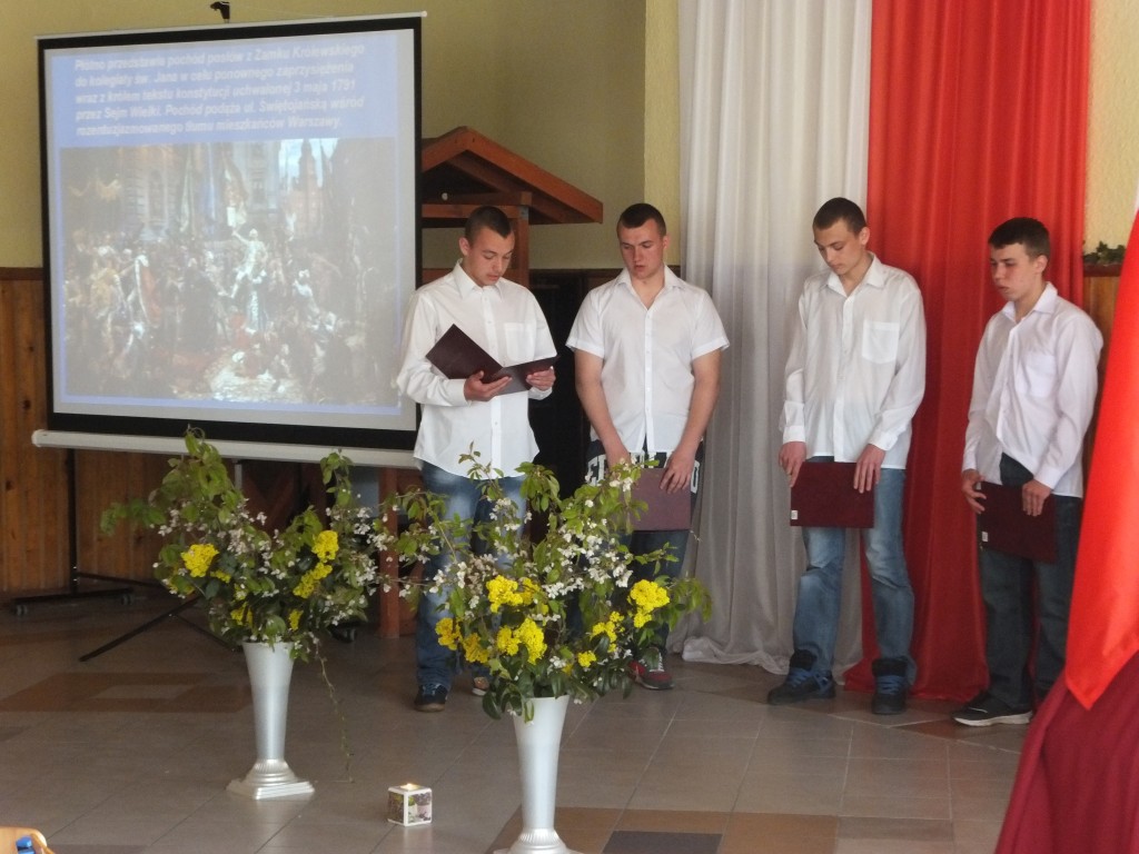Część artystyczna przypomniała w atrakcyjny przystępny sposób okoliczności, w jakich posłowie wraz z królem zdecydowali o pierwszej w Europie ustawie zasadniczej. Nie zabrakło patriotycznych pieśni i wierszy w wykonaniu młodzieży, które ukazały jakże istotne znaczenie dla nas powinno mieć uchwalenie Konstytucji, dla młodzieży współcześnie kształtującej Polskę.