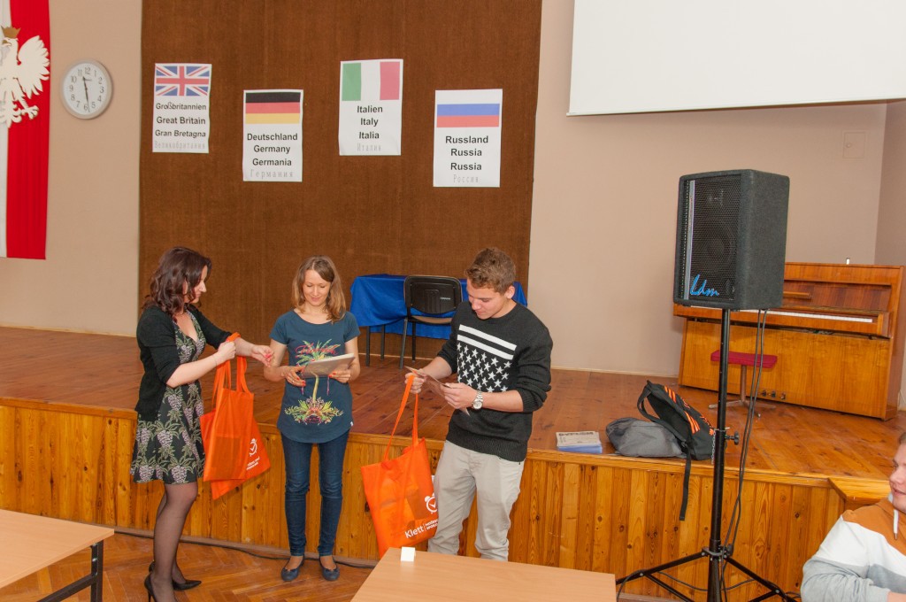 Każdy uczestnik otrzymał zestaw trzech zadań, a najtrudniejsze okazało się ćwiczenie ze słuchania. Po godzinie zmagań, udało się wyłonić trójkę zwycięzców: I miejsce zajął Łukasz Kaszkin, II miejsce – Weronika Zielińska, III miejsce – Dawid Kaszkin uczniowie Gimnazjum nr 1 w Pasłęku).