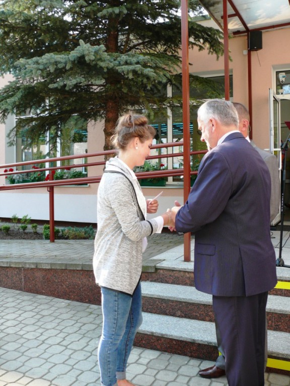 Szczególnie serdecznie dyrektor przywitał uczniów klas pierwszych, którzy rozpoczynają naukę w ZSEiT w Pasłęku.Uczniom, którzy osiągnęli najlepsze wyniki podczas rekrutacji, uroczyście wręczono szkolne legitymacje.