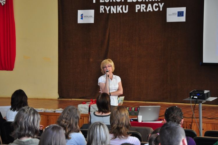Następnie głos zabrała pani dr Lidia Domańska pracownik naukowy Uniwersytetu Warmińsko-Mazurskiego w Olsztynie. Wystąpiła z referatem pt: „Twój sukces na rynku pracy w Twoich rękach”. Swoim wystąpieniem pani Domańska zachęciła uczniów do snucia odważnych marzeń. Przekonała wszystkich, że mogą one stać się rzeczywistością, jeżeli będziemy konsekwentnie dążyć do ich realizacji i poprzemyto ciężką pracą.