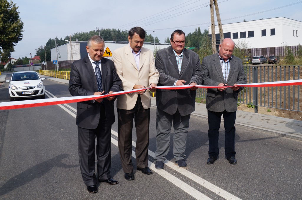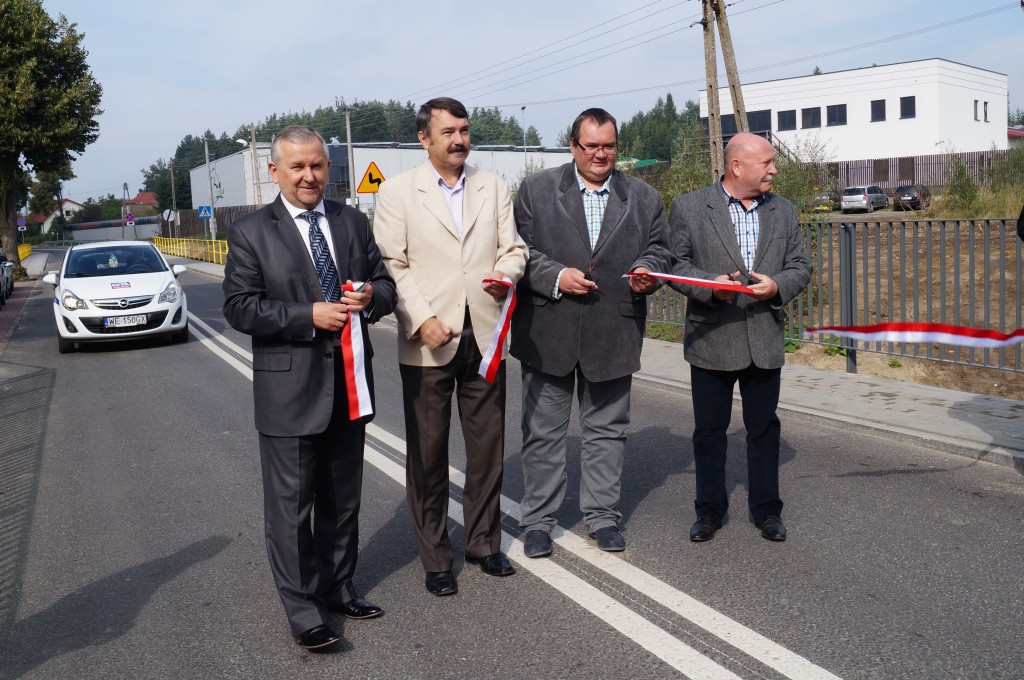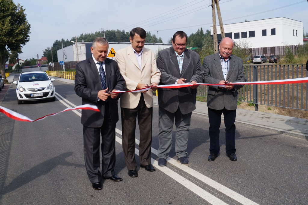 Symbolicznego przecięcia wstęgi dokonali starosta Maciej Romanowski, zastępca wójta Zygmunt Tucholski, dyrektor Zarządu Dróg Powiatowych Tadeusz Przyborski oraz przedstawiciel wykonawcy – przedsiębiorstwa Trakcja PRKIL.
