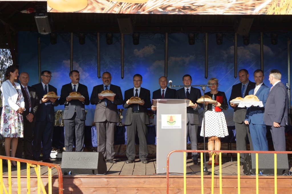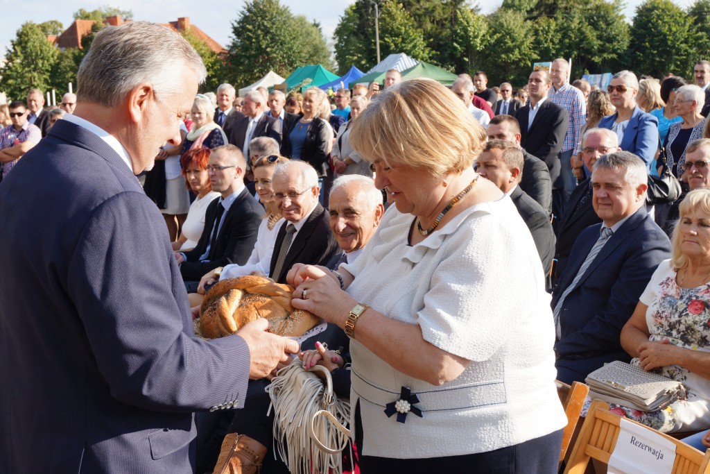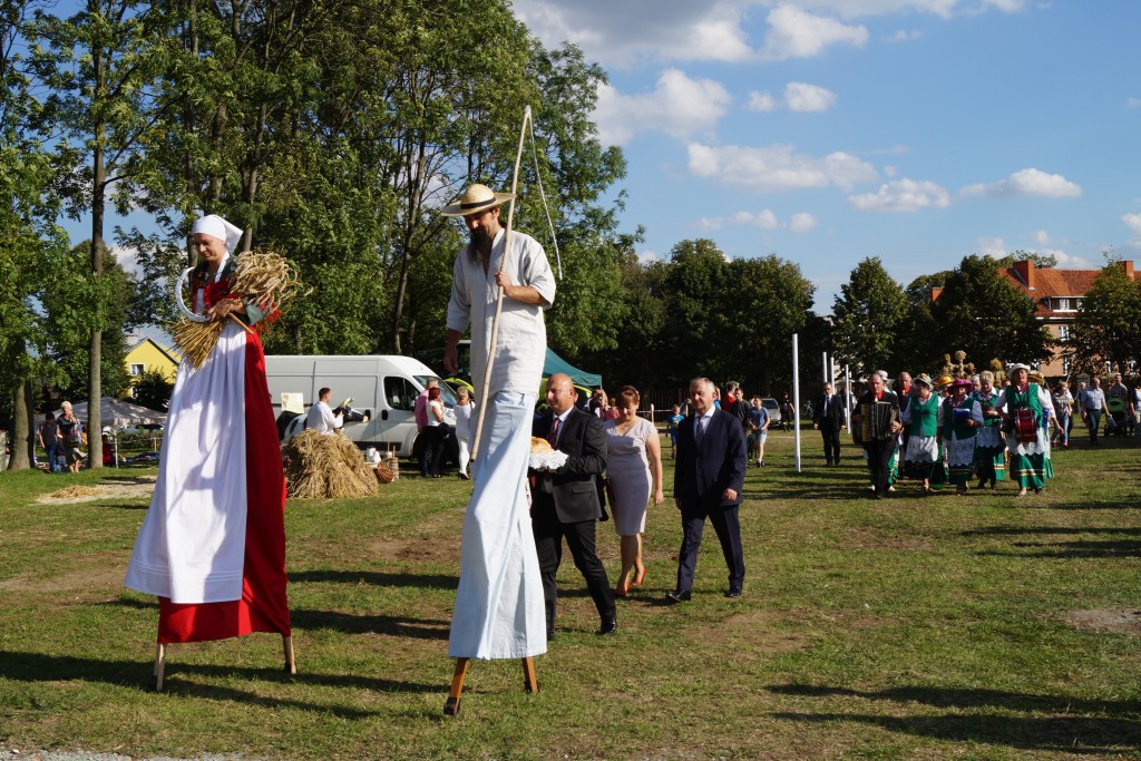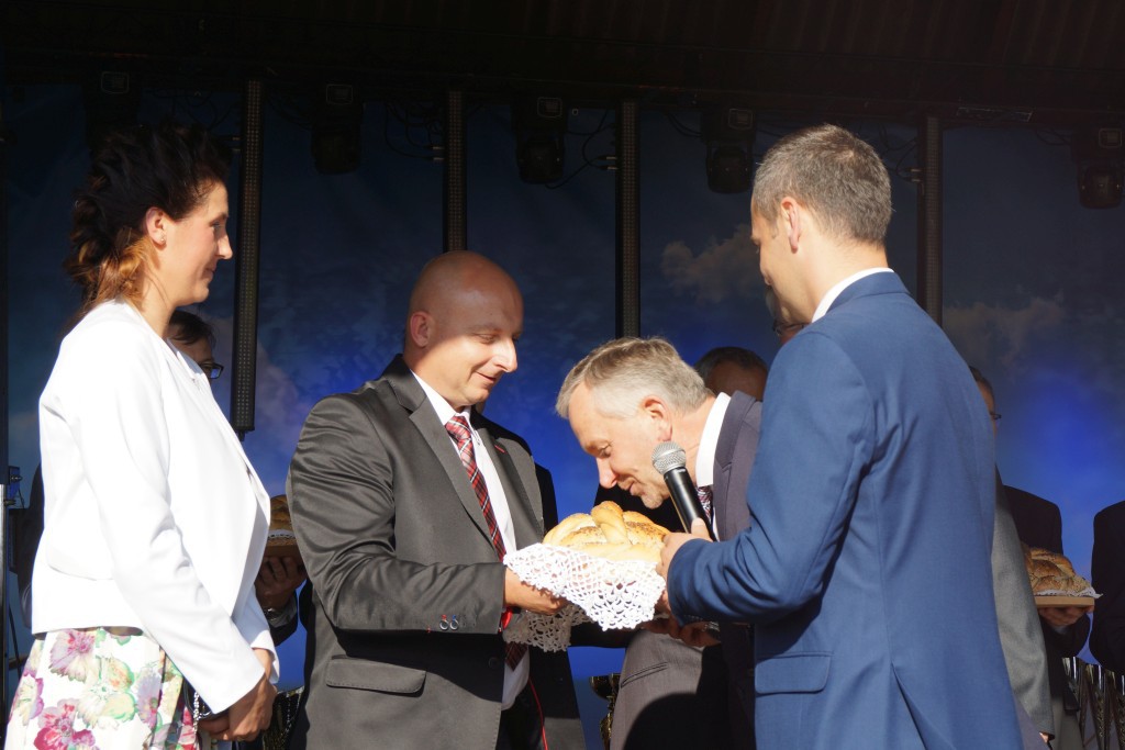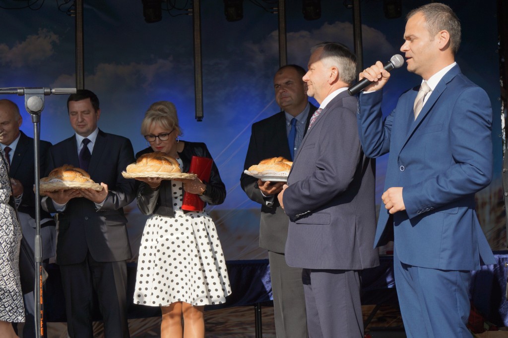 Starostami tegorocznych dożynek byli Beata Kamecka i Marcin Kowalski. Przekazali oni tradycyjny bochen chleba na ręce starosty Maciej Romanowskiego i wójta Marina Ślęzaka.