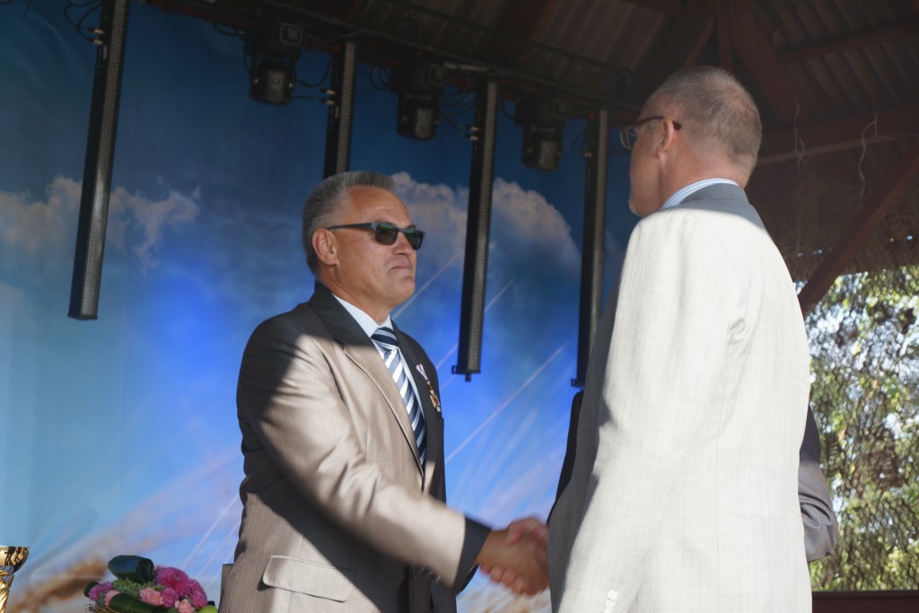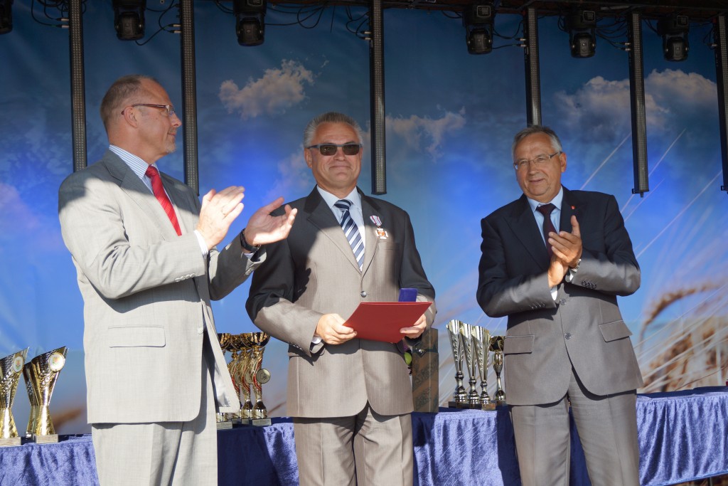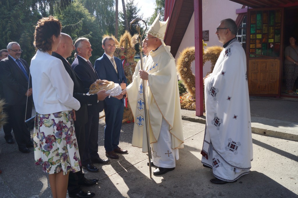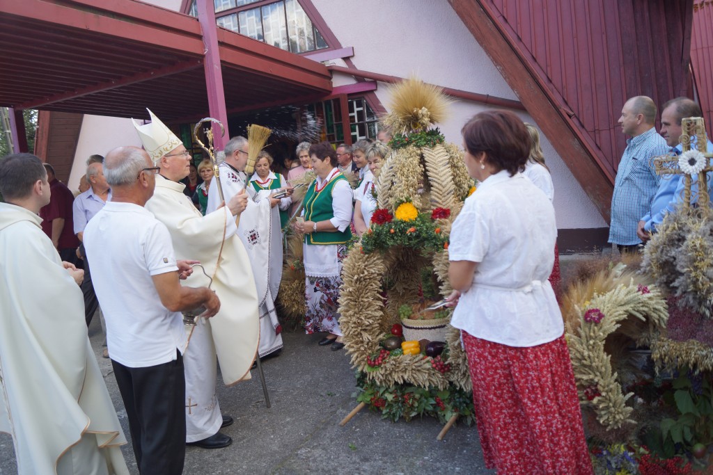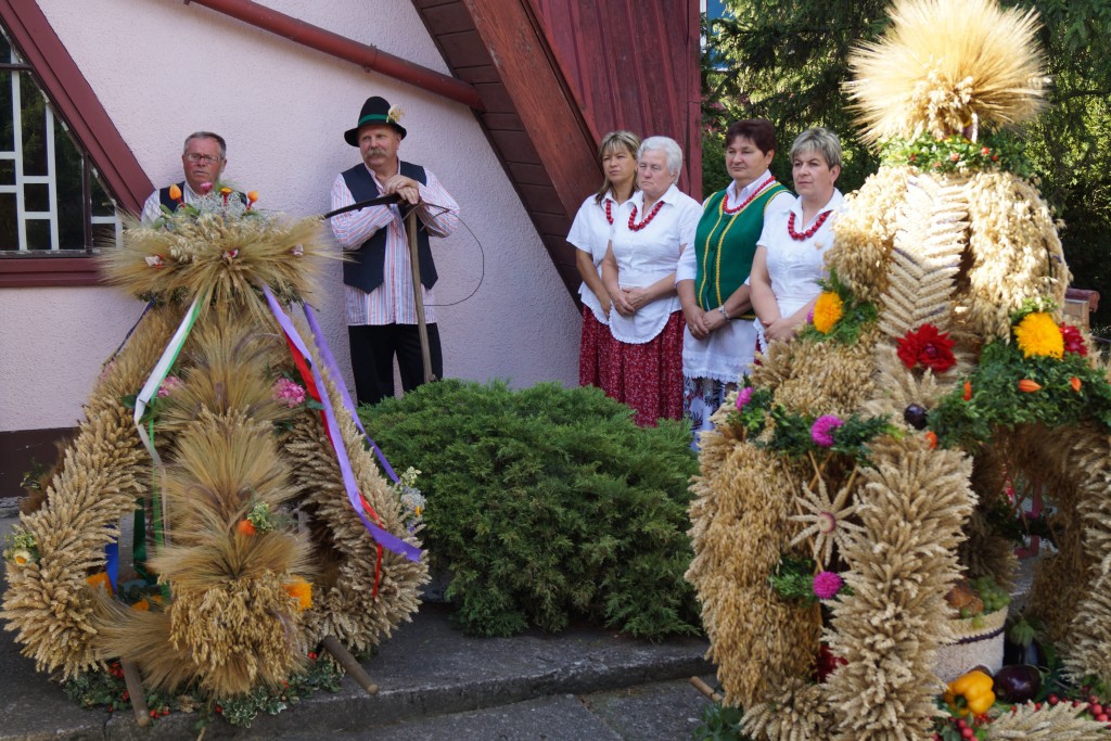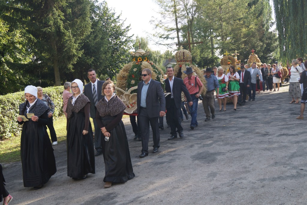 Starostami tegorocznych dożynek byli Beata Kamecka i Marcin Kowalski. Przekazali oni tradycyjny bochen chleba na ręce starosty Maciej Romanowskiego i wójta Marina Ślęzaka.