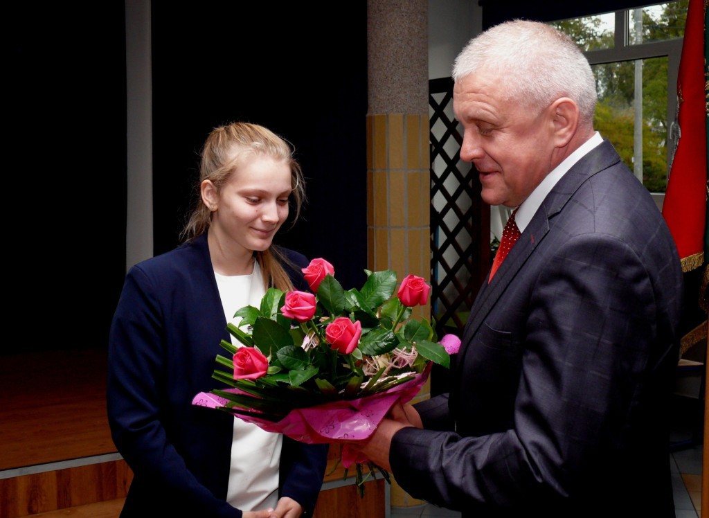 Na zakończenie uczniowie wręczyli zgromadzonym gościom, nauczycielom i pracownikom szkoły wykonane przez siebie kwiaty w geście podziękowania za trud wkładanyw rozwój edukacji.