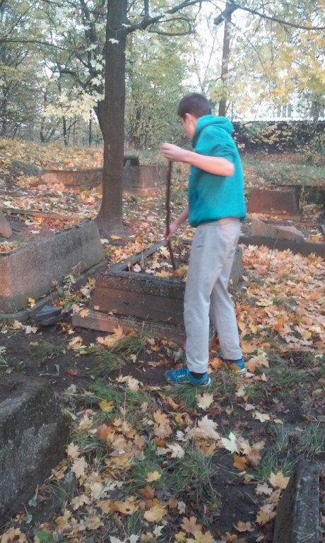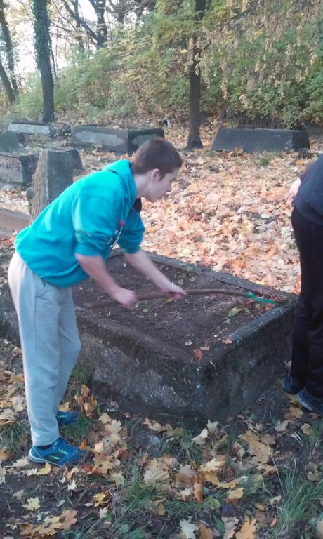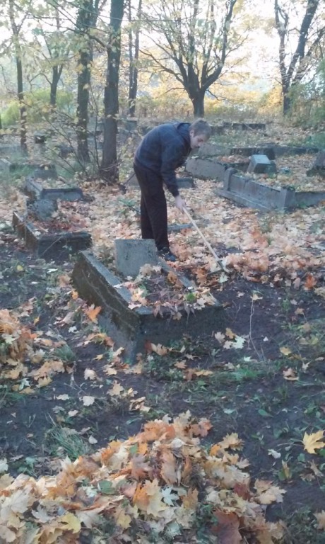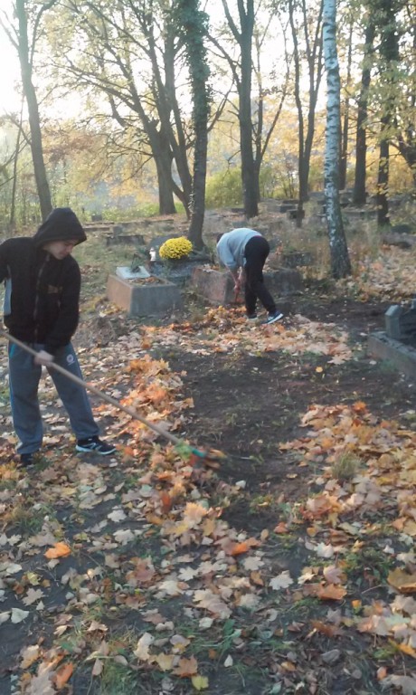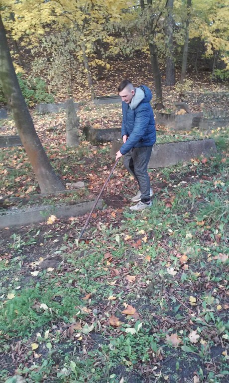 Wychowawca Paweł Górny wraz z wychowankami Młodzieżowego Ośrodka Wychowawczego prowadzili prace porządkowe na starym cmentarzu ewangelickim w Kamionku Wielkim. Celem pracy było uprzątnięcie i przygotowanie cmentarza przed zbliżającym się dniem Wszystkich Świętych.