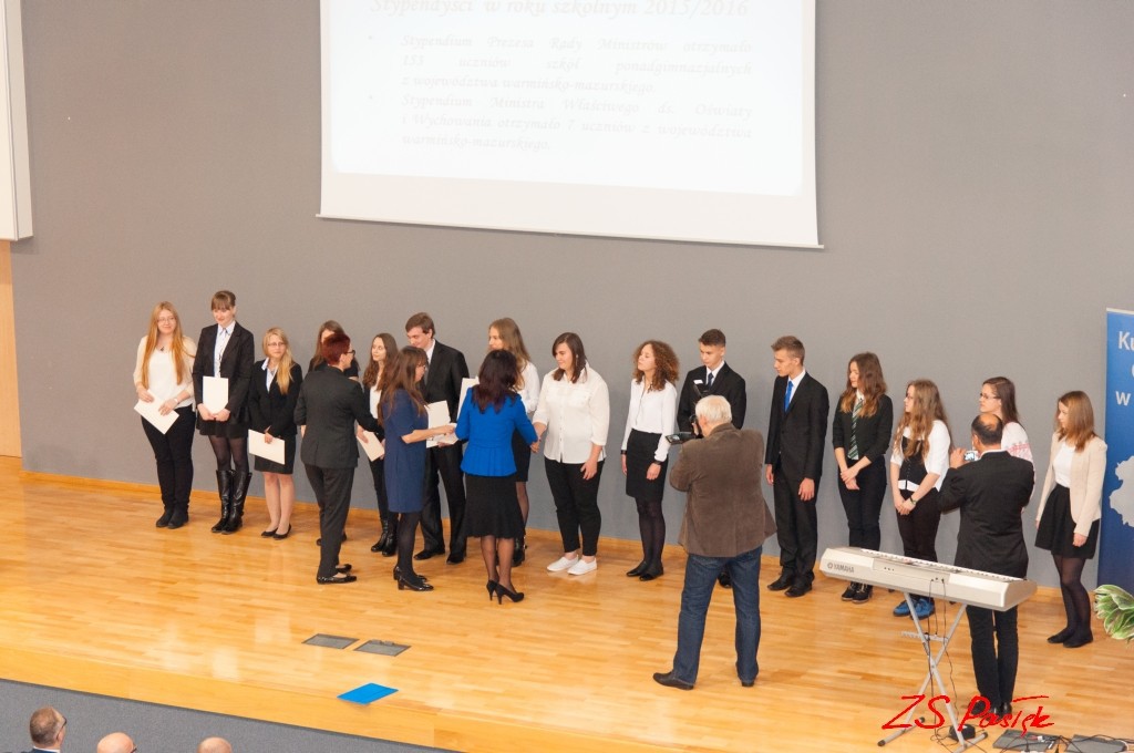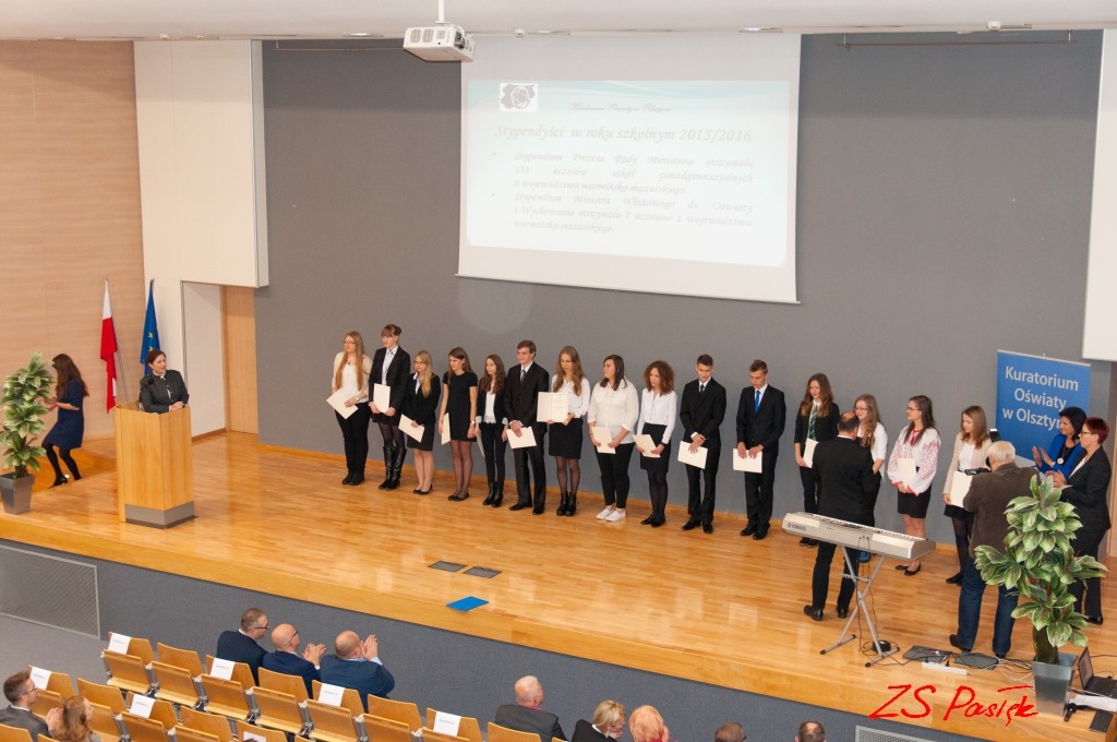 17 listopada w siedzibie Warmińsko-Mazurskiego Kuratora Oświaty w Olsztynie stypendia Prezesa Rady Ministrów odebrały dwie uczennice z Zespołu Szkół w Pasłęku: Natalia Kubaszek klasa II LO) oraz Natalia Bogusz klasa IV technikum) i Zespołu Szkół Ekonomicznych i Technicznych w Pasłęku: Monika Tyburska klasa IV technikum) i Anna Malinowska klasa II liceum).