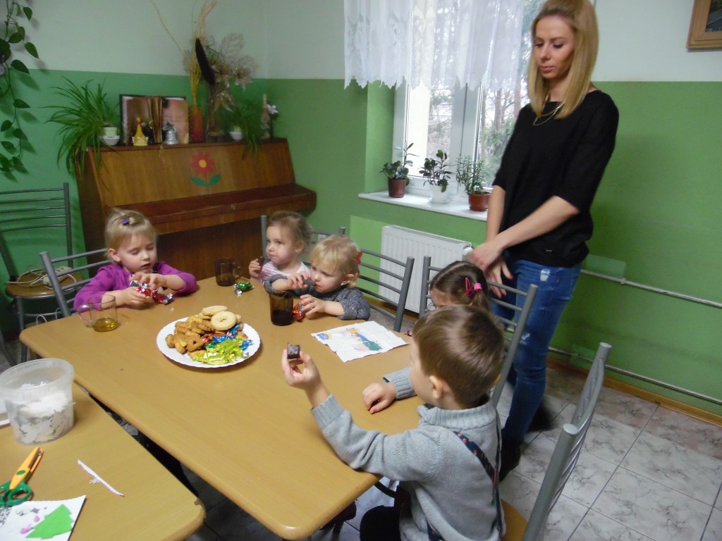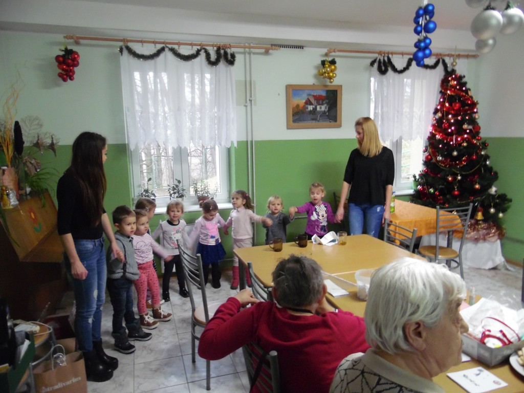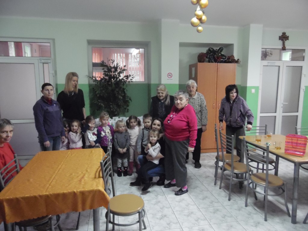 Panie były bardzo wzruszone występem oraz cieszyły się z możliwości spędzenia czasu z dziećmi. Pod koniec spotkania mieszkanki Domu zaprosiły maluchy na słodki poczęstunek. Obdarowaliśmy siebie drobnymi upominkami świątecznymi i pożegnaliśmy się. Dzieci natomiast zapewniły, że będą odwiedzać nas częściej.