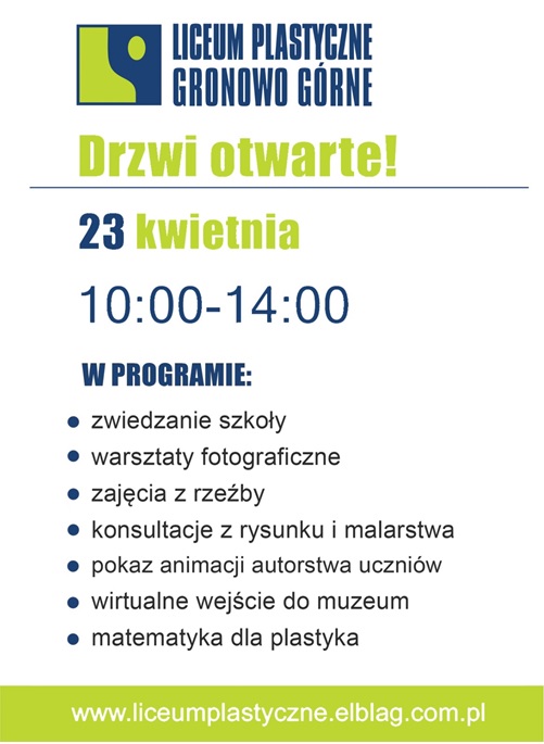 Jedyne w regionie, niebanalne i twórcze Liceum Plastyczne w Granowie Górnym zaprasza młodzież klas III gimnazjum do odwiedzenia naszej szkoły w ramach „Drzwi otwartych”