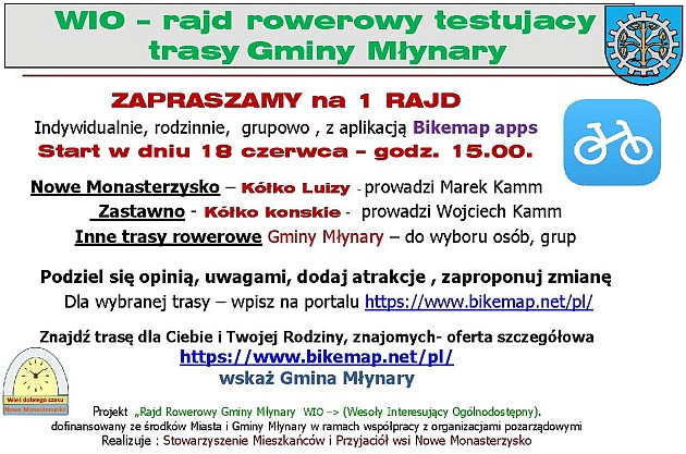Zapraszamy do udziału w rowerowym weekendzie po trasach w gminie Młynary. Będzie to ciekawa możliwość sprawdzenia nieznakowanych jeszcze szlaków rowerowych w tej gminie.