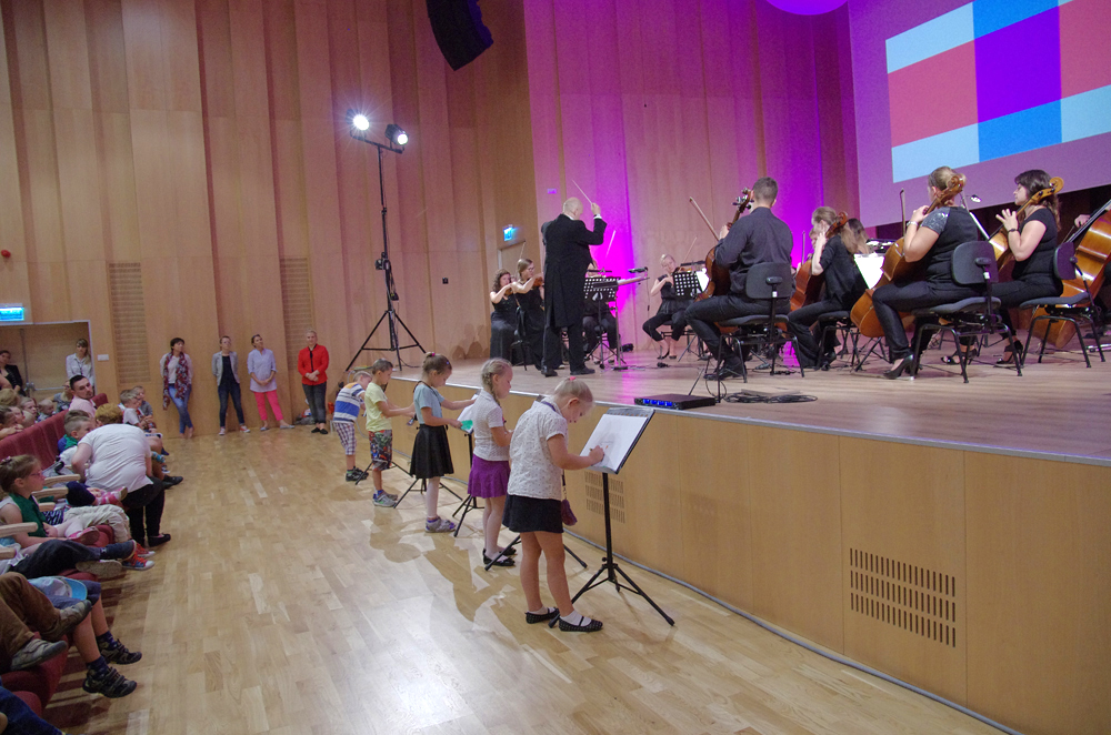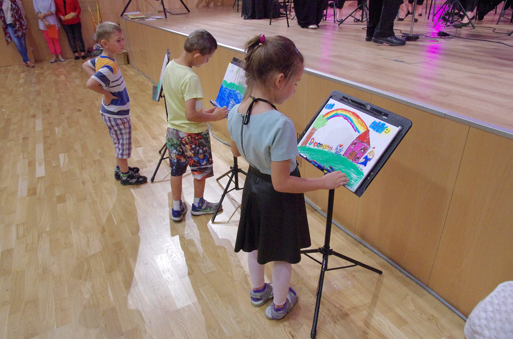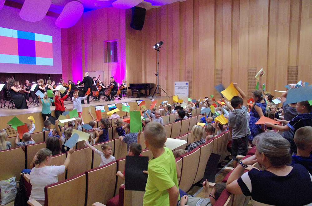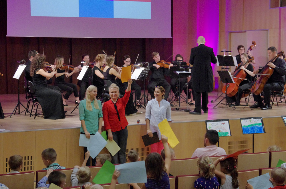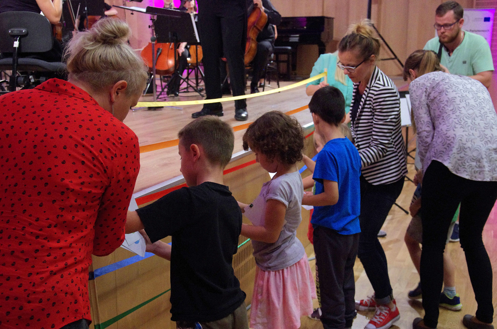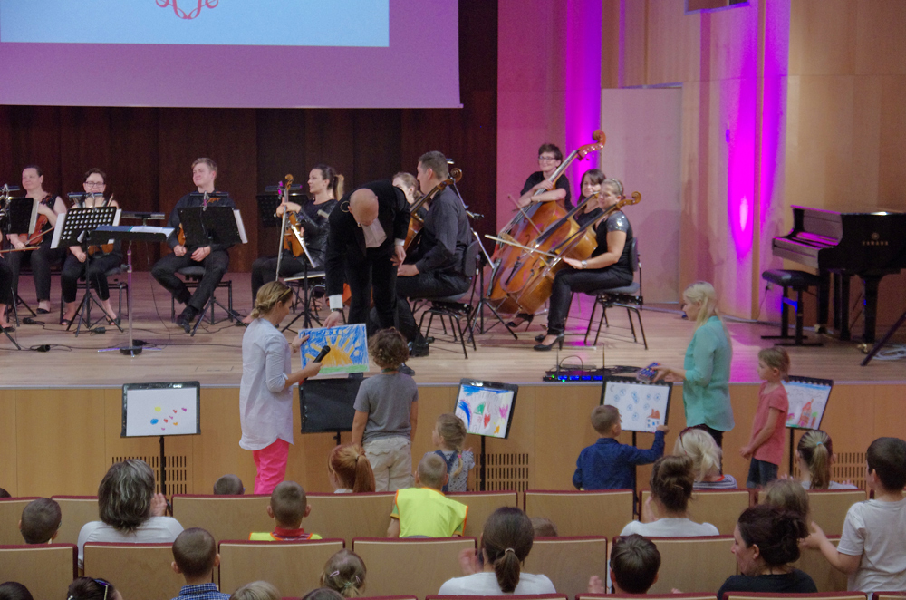 W projekcie wzięły udział trzy nauczycielki z LP w Gronowie Górnym. Zadaniem pań: Romy Jaruszewskiej, Aleksandry Hońko i Katarzyny Sawickiej było wzbogacenie koncertu o działania plastyczne angażujące dzieci z widowni. Zaczęły od krótkiej prezentacji o barwach podstawowych i pochodnych oraz animacji multimedialnych; przeprowadziły zabawę z kolorową pięciolinią, podczas której dzieci, samodzielnie montując nutki, wcieliły się w rolę małych kompozytorów. Uczestnicy koncertu bawili się również w przekładanie emocji na kolor, a kilkoro z nich stworzyło rysunki zainspirowane zasłyszanym utworem. Wszystkie działania miały na celu integrację muzyki z plastyką. Dzieci z chęcią uczestniczyły w aktywnościach, bawiły się barwą i dźwiękiem.