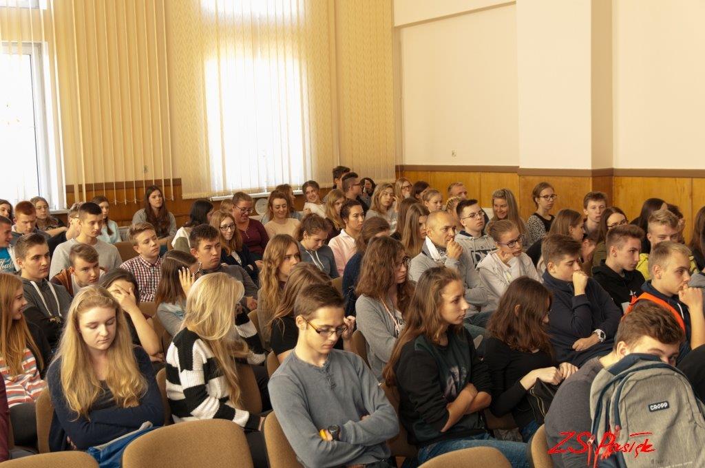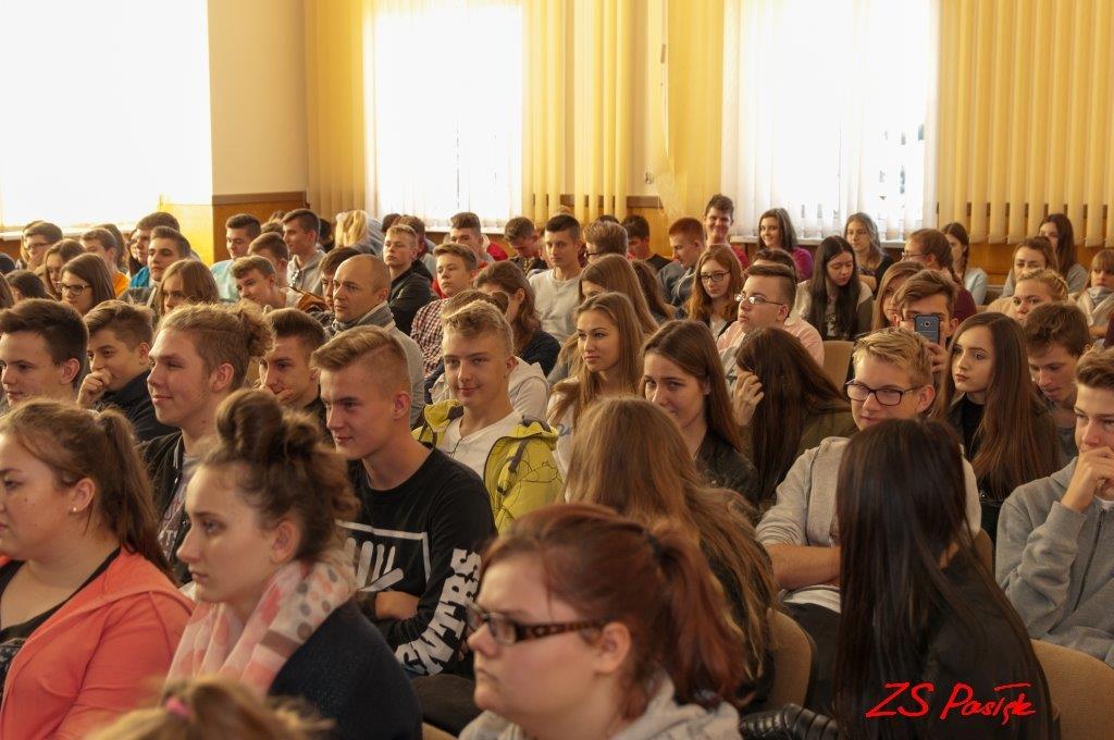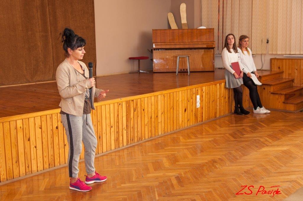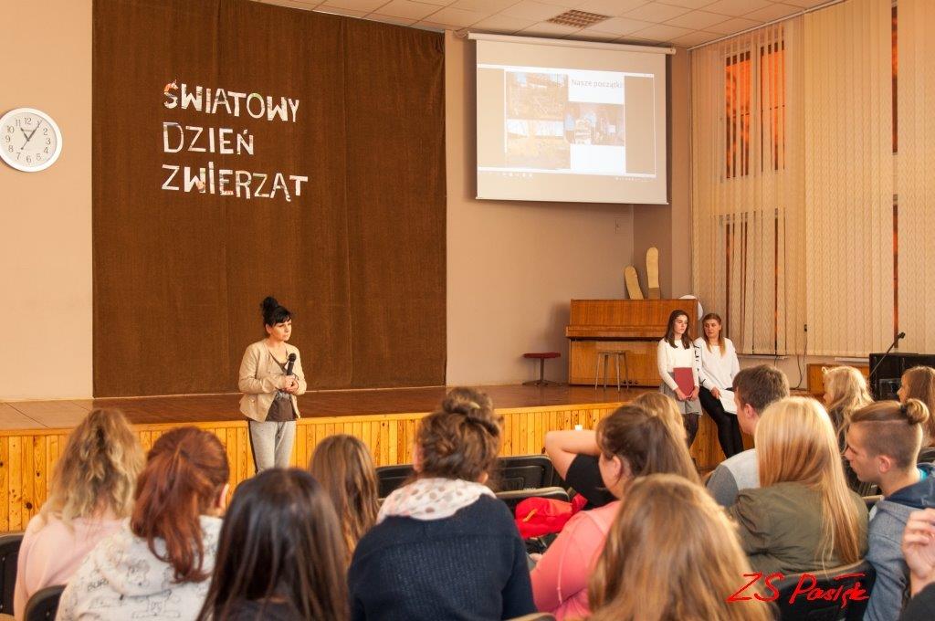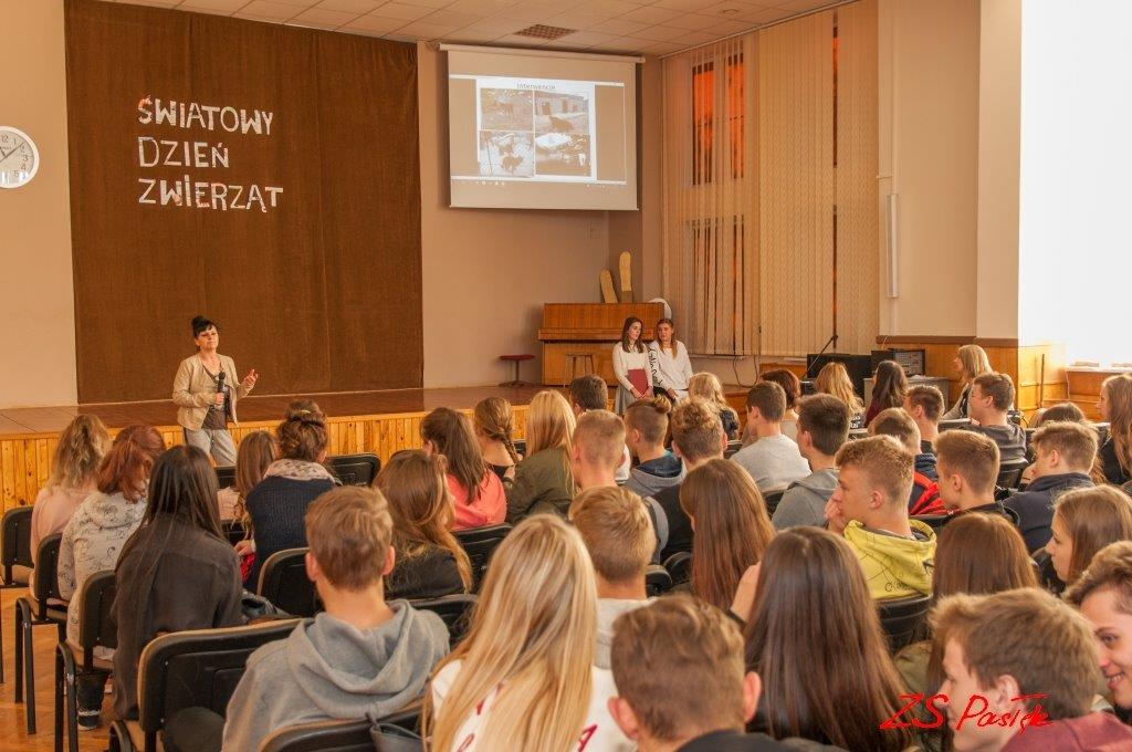 Z okazji Światowego Dnia Zwierząt zaprosiliśmy do naszej szkoły prezes Warmińsko- Mazurskiego Stowarzyszenia Obrońców Praw Zwierząt imienia Świętego Franciszka z Asyżu, Barbarę Zarudzką, która opowiedziała nam o problemach związanych z pracą ze zwierzętami oraz o pracy wolontariuszy w schronisku. Panią prezes wspierała wieloletnia wolontariuszka schroniska „Psi Raj” w Pasłęku - Klaudia Kłosińska, uczennica klasy 3 c, która zachęcała uczniów szkoły do zostania wolontariuszem. Szkolne Koło Wolontariatu przekazało na ręce pani Prezes dochód ze szkolnej zbiórki. Cieszymy się, że nasza cegiełka wesprze podopiecznych schroniska „Psi Raj”.