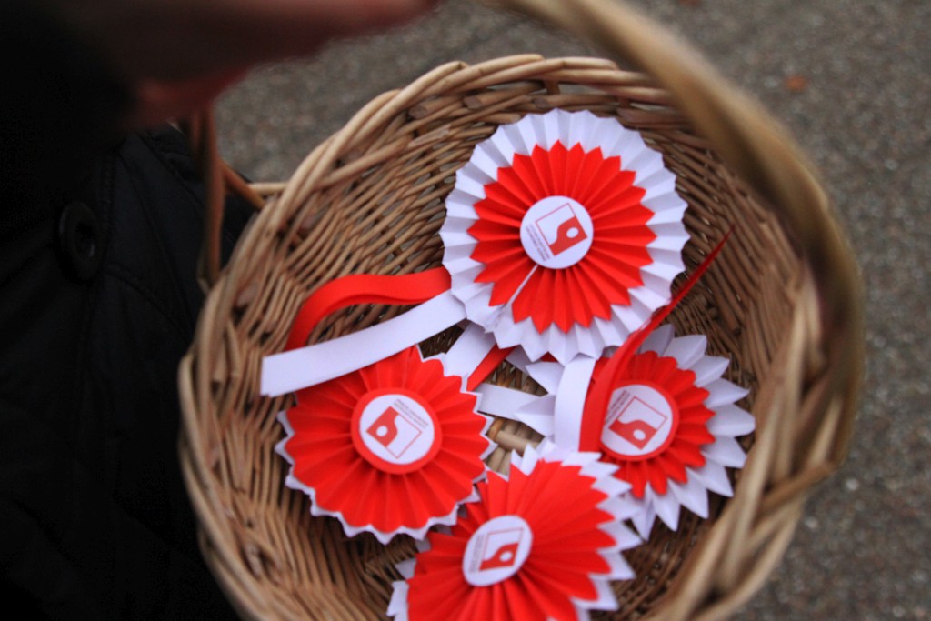 Inicjatywa została ciepło przyjęta, obdarowani z godnością umieścili na piersi znak patriotyzmu.