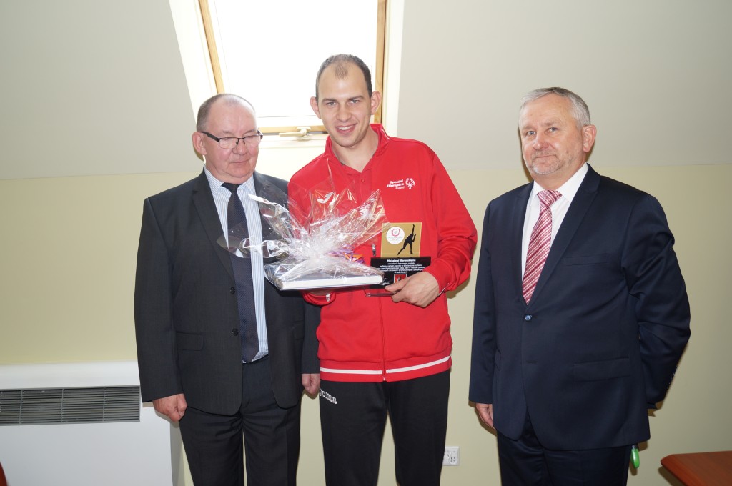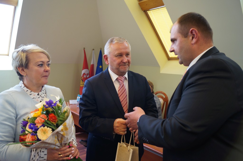 Sesja rozpoczęła się od miłego akcentu. Przewodniczący Ryszard Zagalski i starosta Maciej Romanowski wręczyli statuetkę Michałowi Werońskiemu, laureatowi Światowych Zimowych Igrzysk Olimpiad Specjalnych. Następnie okolicznościową statuetkę z okazji Samorządowego Dnia Sołtysa otrzymała Celina Sokołowska - sołtys Węziny, gmina Elbląg.