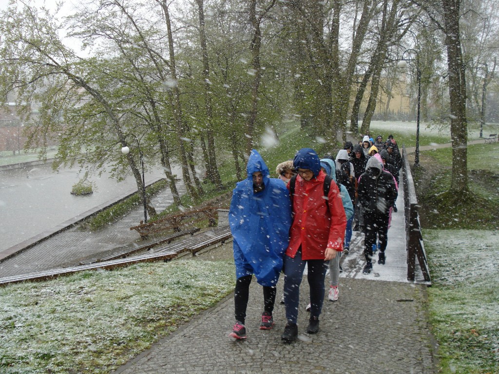 Po raz drugi odbyliśmy szkolenie w jednostce wojskowej pod opieką nauczycieli Edyty Sienkiewicz i Bolesława Czechowskiego. Niestety pogoda była „taktyczna”, jak mówią żołnierze, czyli było bardzo zimno, wietrznie i padał śnieg. I taka pogoda jest najlepsza do odbywania zajęć z taktyki.