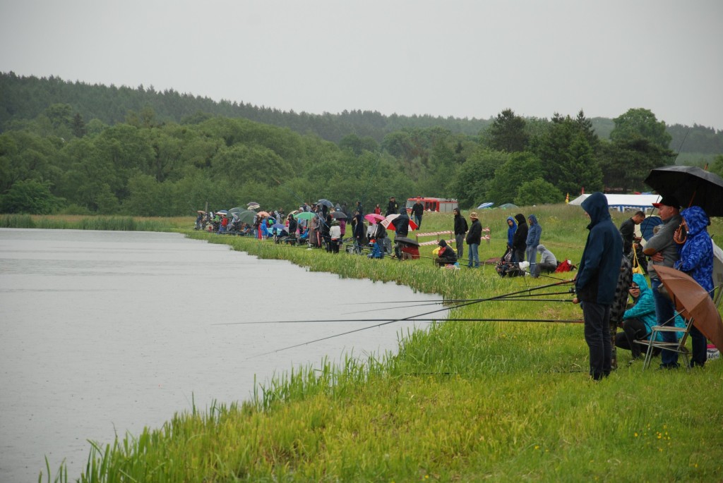 Dla wszystkich uczestników, oprócz łowienia ryb przygotowane były też konkursy i różne zabawy, w których szczególnie uczestniczyły dzieci z grupy wiekowej do lat trzech. Pozostałe dzieciaki brały udział w zawodach wędkarskich w trzech grupach wiekowych tj.: Grupa I w wieku 4 – 7 lat, grupa II w wieku 8 – 12 lat, oraz III grupa 13 – 18 lat. Ze względu na padający przez cały czas deszcz zawody zostały skrócone do dwóch godzin.
