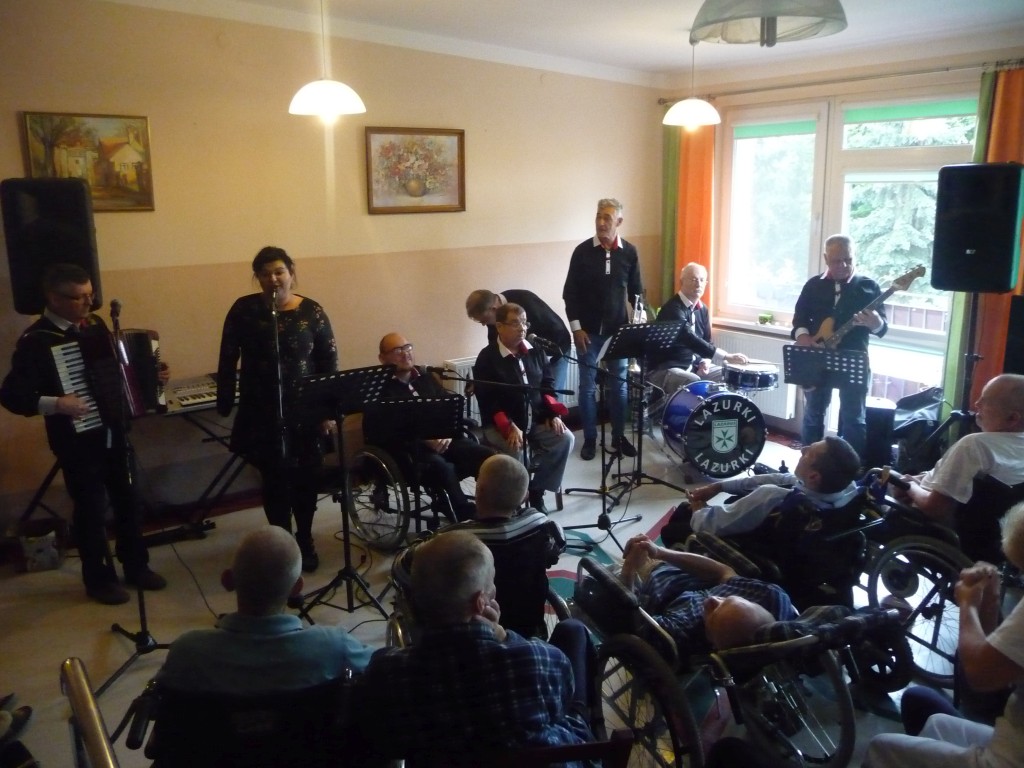 Dnia 15.09.2017 w Domu Pomocy Społecznej w Tolkmicku gościł zespół LAZURKI działający przy Elbląskim Stowarzyszeniu Pomocy Humanitarnej im. św. Łazarza „Lazarus” w Elblągu. Nastrojowe piosenki wykonane przez zespół wprowadziły mieszkańców we wspaniały nastrój, gorąco oklaskiwali występ, świetnie się bawili, śpiewali. Występy zostały zakończone gromkimi brawami oraz bisami.